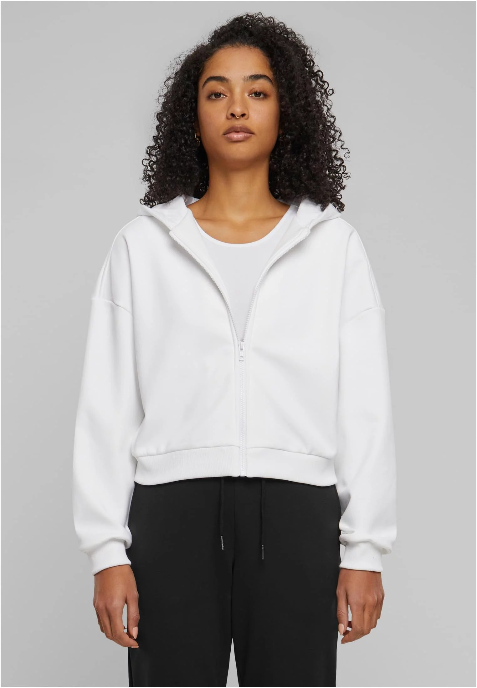 Trendy aktualizace pro váš ležérní šatník. Tato krátká mikina s kapucí dokonale vystihuje ducha moderního streetwearu. Díky zapínání na zip nabízí snadnou a všestrannou možnost stylingu. Monochromatický design zdůrazňuje jeho všestrannost a dělá z něj ideálního partnera pro všechny džíny nebo legíny. Měkká směs 95 % polyesteru a 5 % elastanu zaručuje pohodlné nošení, zatímco kapuce a klokaní kapsy dodávají funkční akcenty. Ať už pro pohodový den doma, na kávu do města nebo jako sportovně elegantní outfit, tato mikina je nezbytnou součástí každého moderního šatníku.