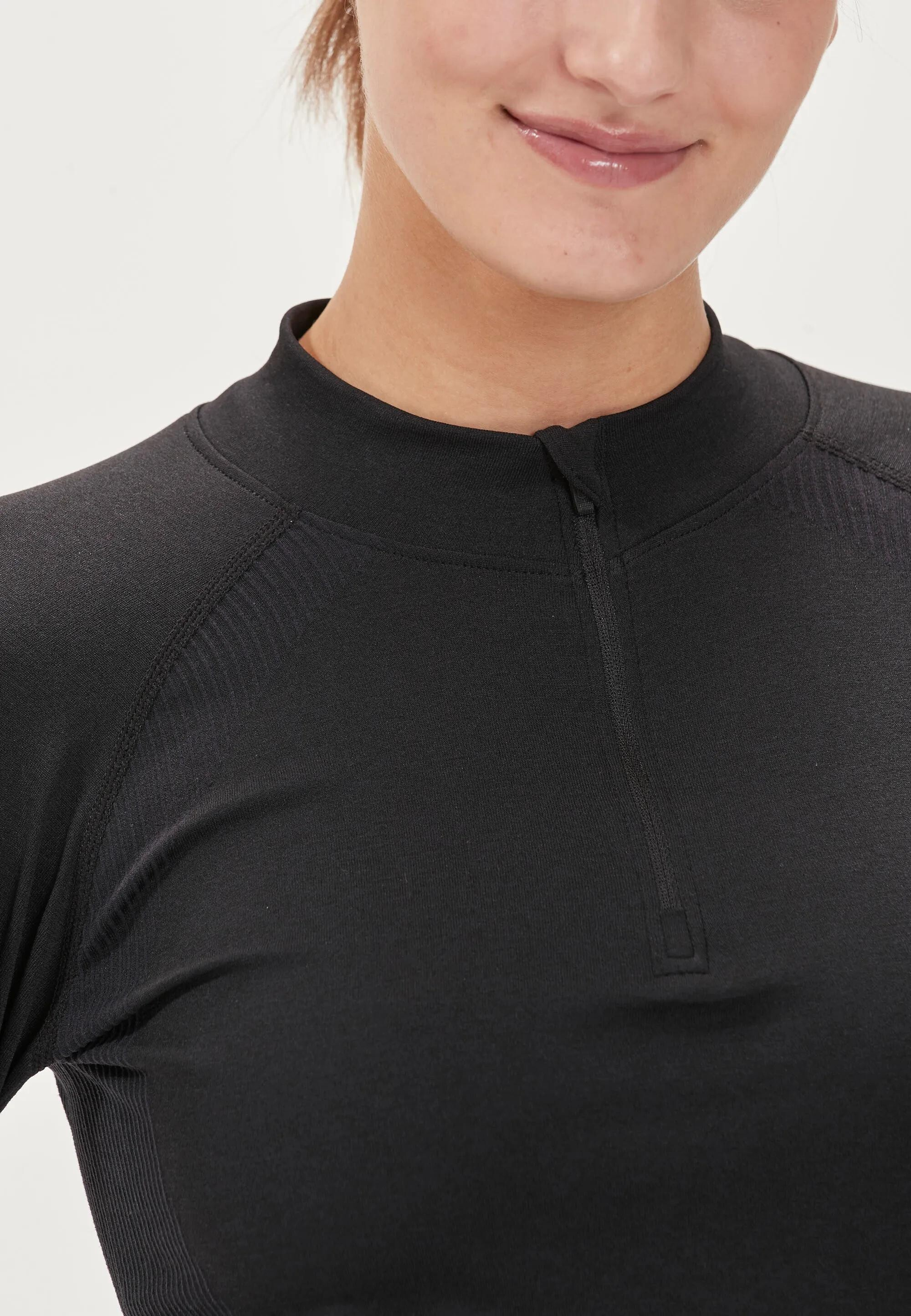 Vysoký límec se zipem do poloviny hrudi nabízí extra ochranu a snadné odvětrání.