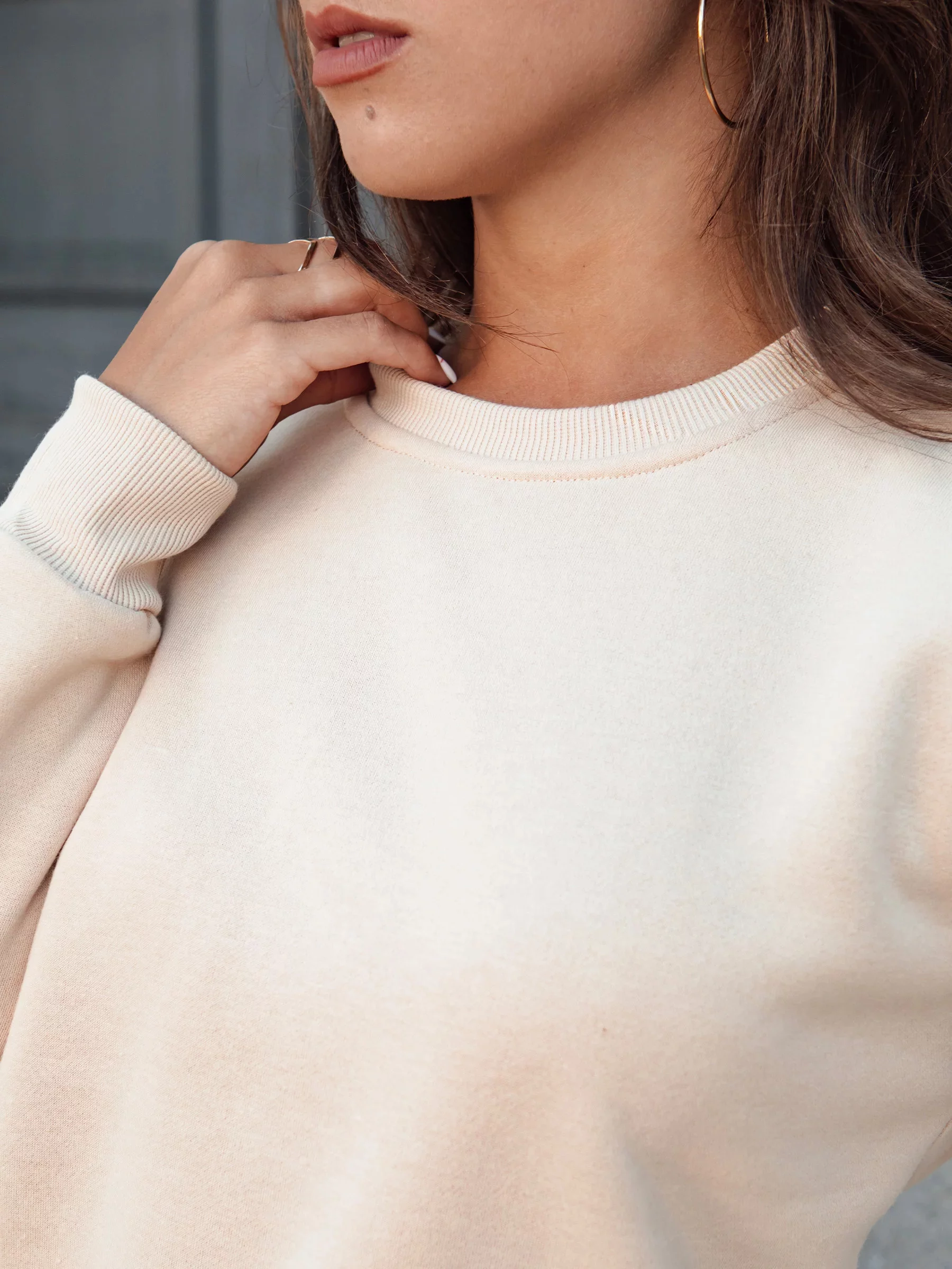 Dámská mikina bez kapuce - pohodlná a stylová na každý den. Vyrobená z měkkého materiálu, zajišťujícího pohodlí. Výstřih kulatý, spodní lem a rukávy zakončené pruženkou. Komfortní střih, ideální pro různé stylizace. Dodej pohodlí a styl do svého šatníku!