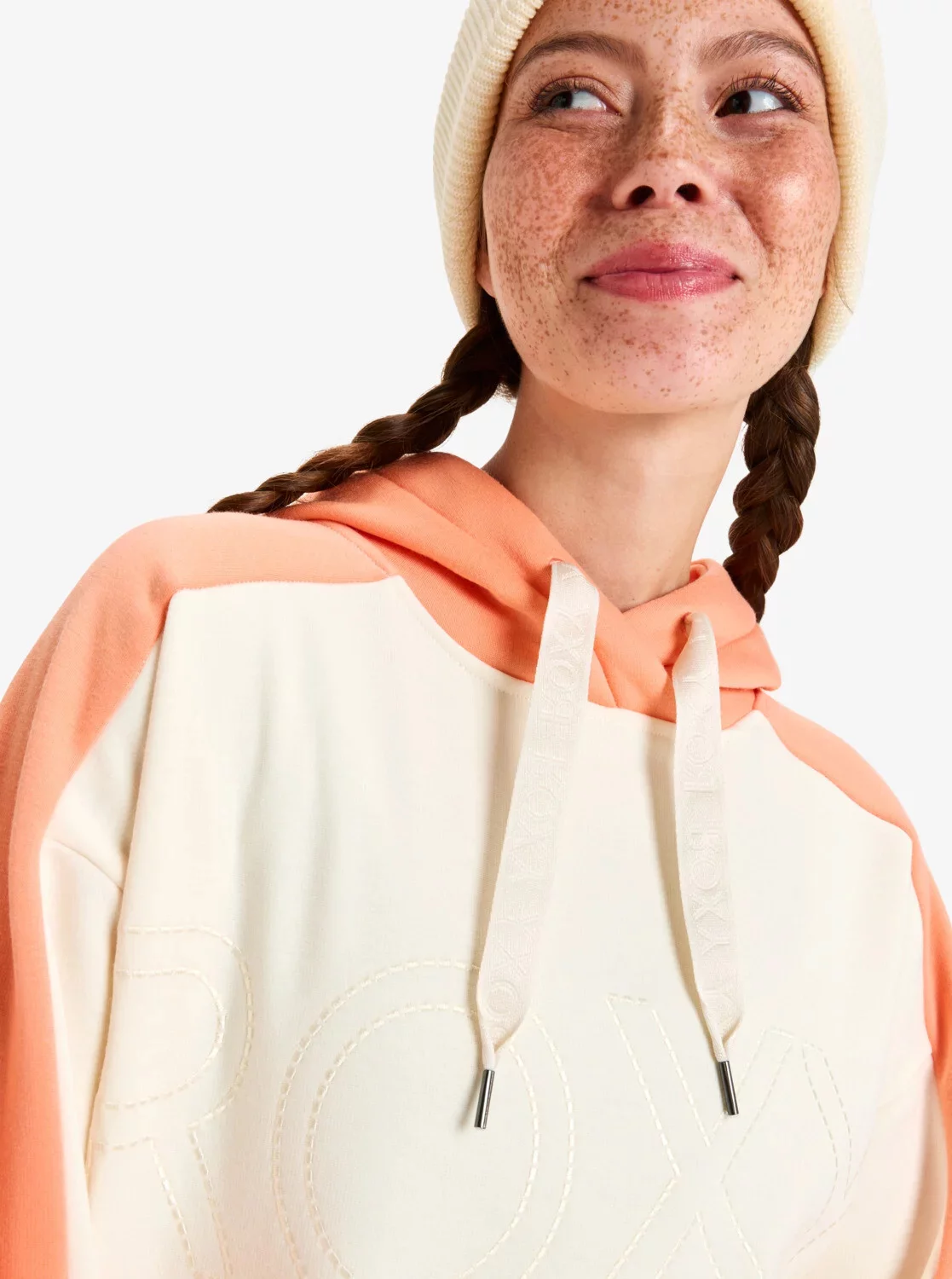 Překřížená kapuce s nastavitelnými šňůrkami pro lepší přizpůsobení. Speciální očka pro průchod sluchátek nebo kabelů pro pohodlné poslechy.