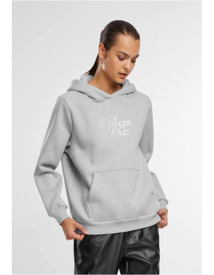 Tato mikina s kapucí má na přední straně jednoduchý, elegantní potisk "Angels Club". Zadní strana mikiny přináší větší, výrazný motiv andělských křídel doplněný o svatozář. Mikina má praktickou přední kapsu a žebrované manžety pro pohodlné nošení. Stylově propojuje minimalistický design s výraznými grafickými prvky.
