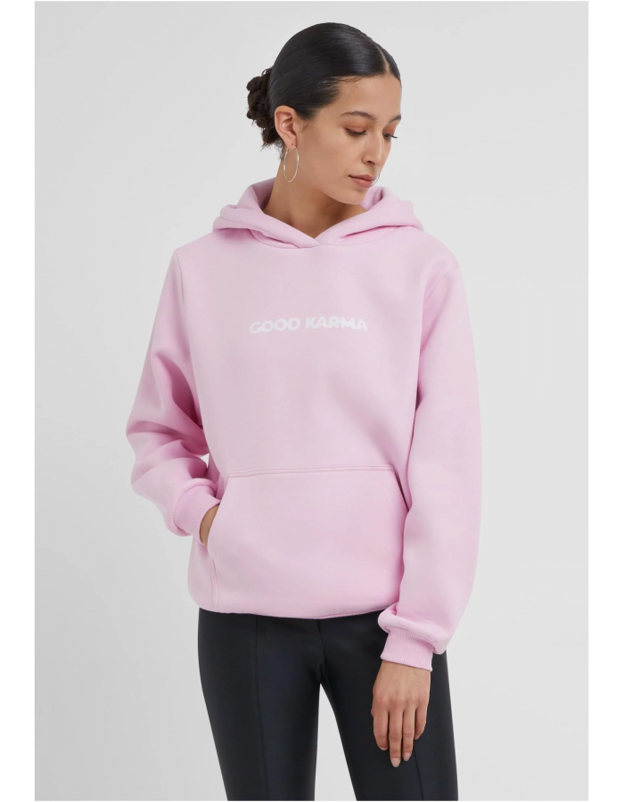 Mikina s kapucí, která má minimalistický design na přední straně s nápisem "GOOD KARMA". Zadní strana mikiny obsahuje větší grafiku vykresleného motýla s nápisem "GOOD KARMA" nad ním. Mikina má klasický střih s kapucí a klokaní kapsou, což z ní činí pohodlný a stylový kousek pro každodenní nošení. Mikina je vyrobena z měkkého a příjemného materiálu, ideální pro volnočasové aktivity.
