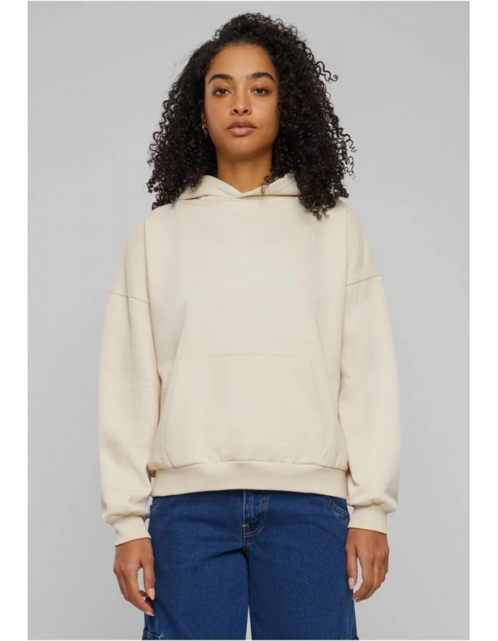 Dámská mikina s kapucí v barvě bílý písek je moderní a pohodlný kousek, ideální pro volnočasové nošení. Tato mikina má oversized střih, který poskytuje uvolněný a trendy vzhled, zatímco organická bavlna, ze které je vyrobena, zajišťuje maximální komfort a šetrnost k životnímu prostředí.