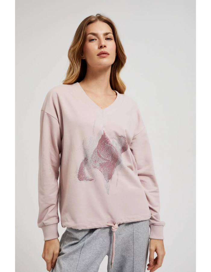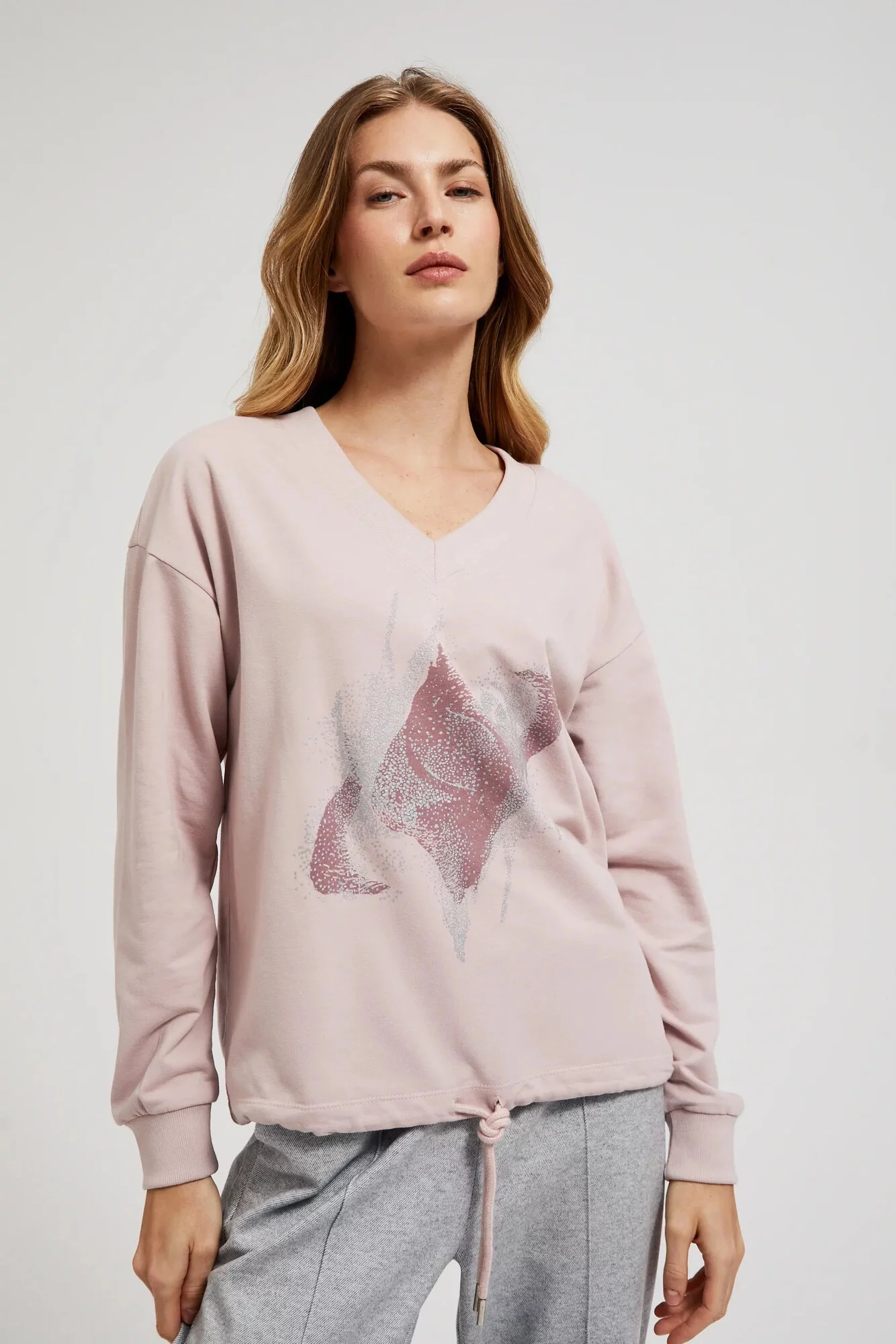 Dámská mikina s potiskem a zavazováním MOODO - růžová Velikost: xs