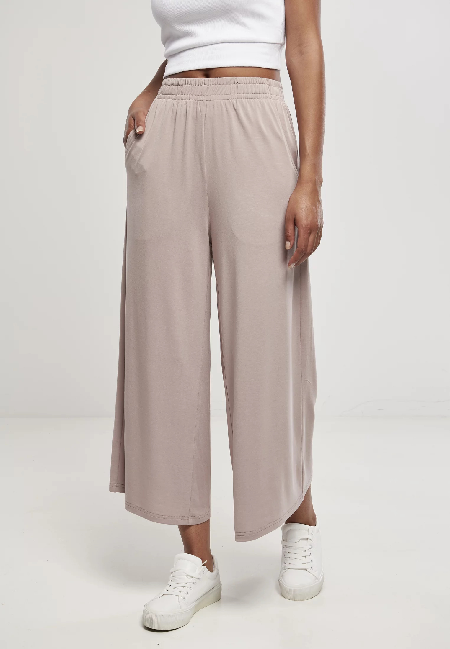 Široký, ležérní, volný: tento módní kousek kombinuje výhody kalhot a sukní. Díky svému širokému střihu vám culotte nabízí splývavou siluetu a vysoký komfort nošení. Elastický pas drží pohodlně na svém místě. Další zajímavost: módní 3/4 délka pro elegantní, ležérní vzhled pro letošní léto. Osvoboďte se a překonejte své hranice.