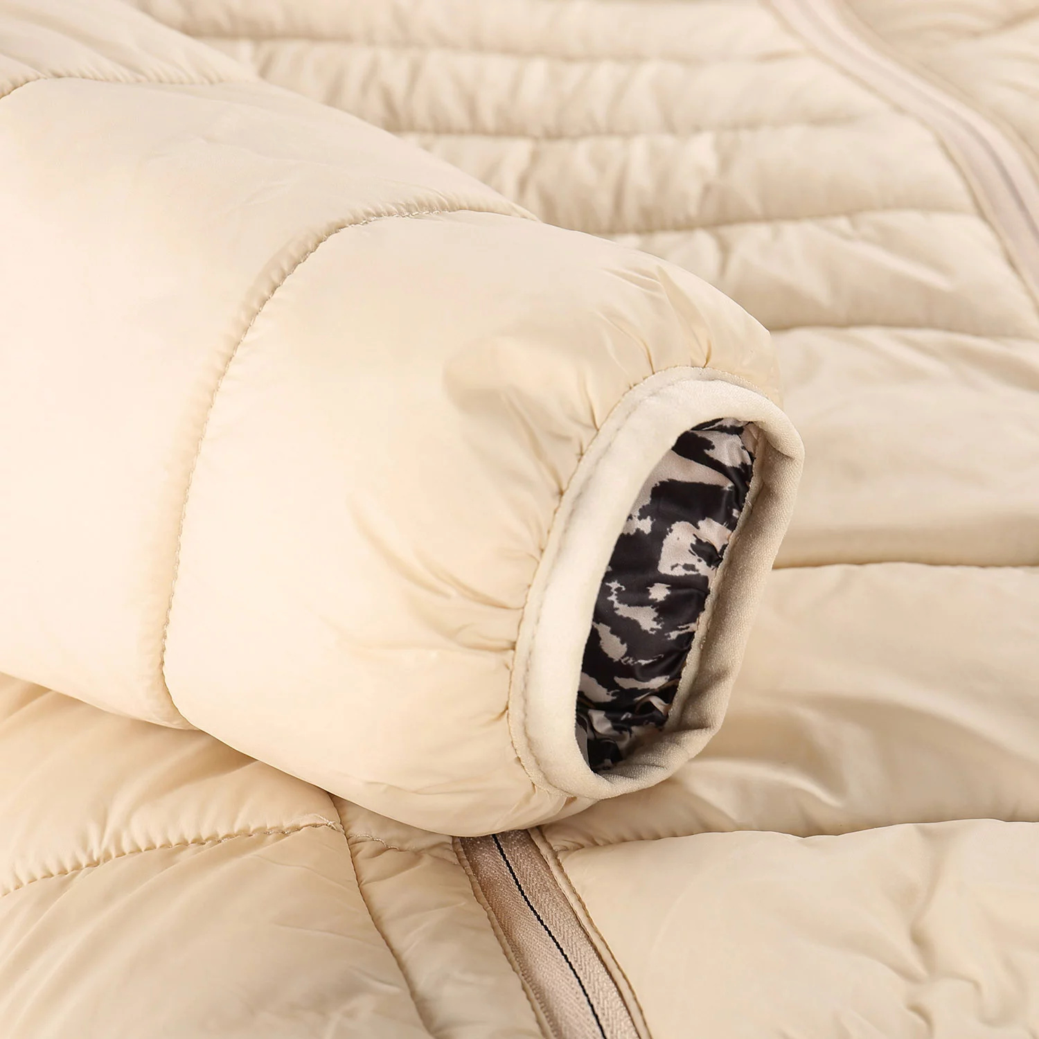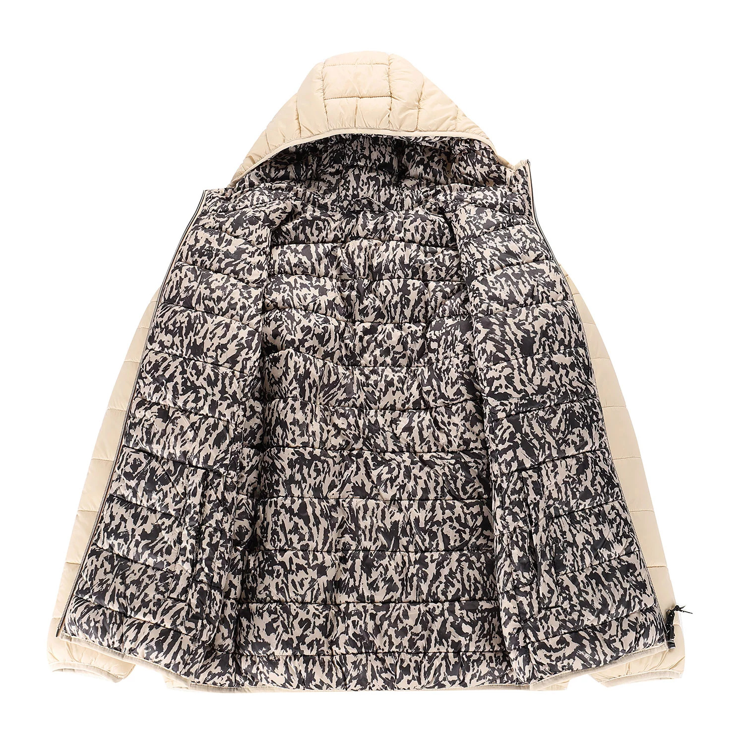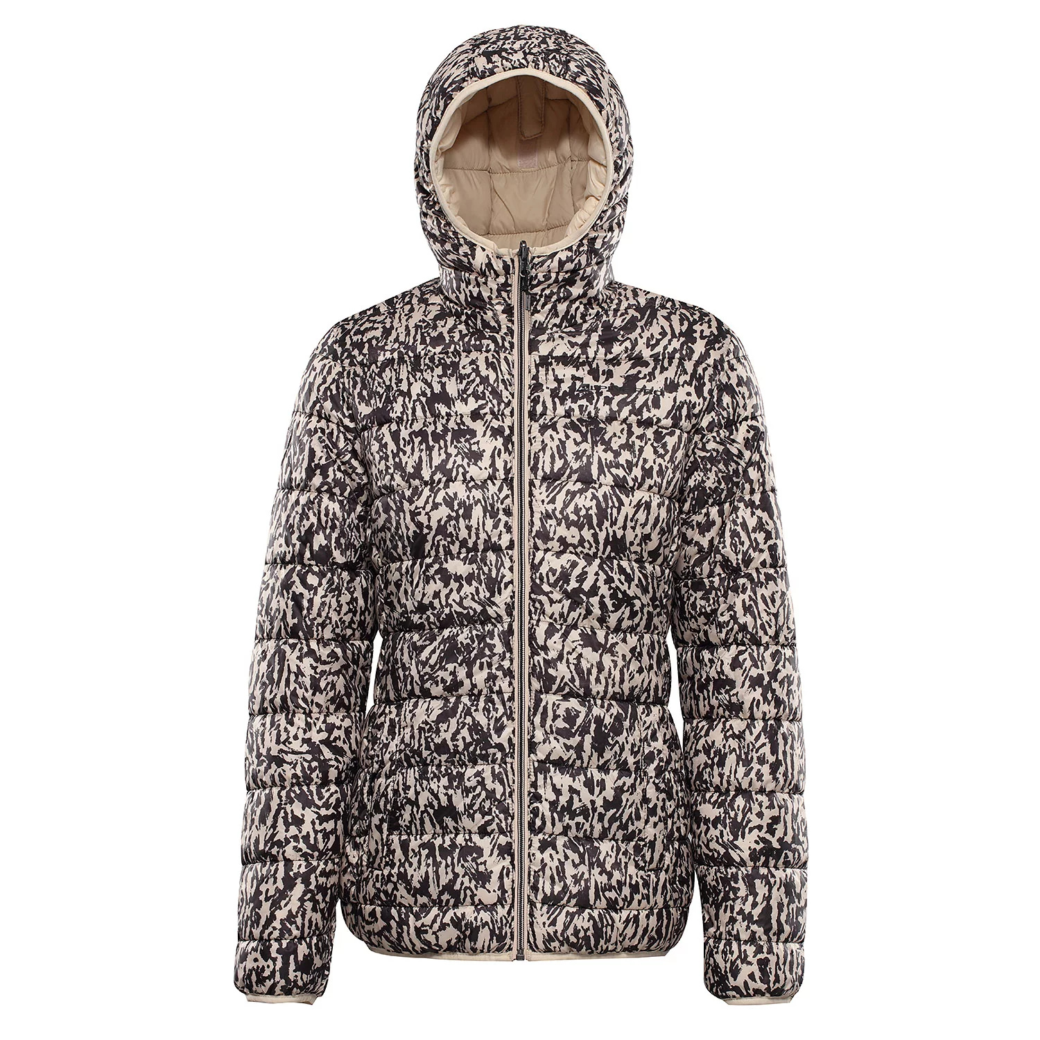 Bunda má hřejivou, ale lehkou výplň a kontrastní prošívanou podšívku. Praktické detaily, jako je kapuce, elastické lemy na rukávech a spodním okraji, krytka brady, čtyři kapsy na zip a prodloužené taháčky, oceníte při nošení ve městě i v přírodě.