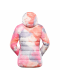 Dámská zimní bunda EROMA je vyrobena z vodoodpudivého, větruodolného, ultralehkého a krásně celopotištěného materiálu se zátěrem a funkční úpravou Teflon EcoElite™. Tato úprava navíc neobsahuje fluorocarbony, a je tak příznivá k životnímu prostředí. Má silnou hřejivou výplň, kontrastní prošívanou podšívku, kapuci, rukávy a spodní část lemované gumou, krytku brady, 4 praktické kapsy se zipy a delší taháčky pro snadnou manipulaci. Bunda je plnohodnotně oboustranná. Složení materiálu: 100% nylon.