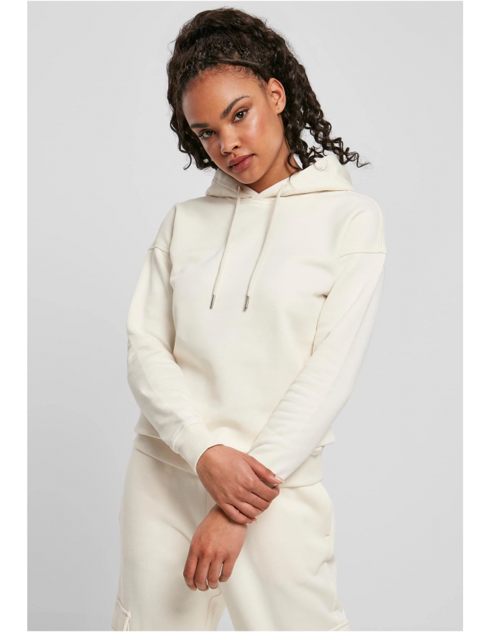 Tato útulná dámská mikina s kapucí patří do každého módního šatníku. Kombinuje optimální pohodlí při nošení s časem prověřenými vlastnostmi mikiny. Samozřejmostí je kapuce s odpovídajícími stahovacími šňůrkami – špičky jsou kovové. Široké manžety na rukávech, spodním lemu a ramenou nejlépe padnou. Skutečným vrcholem dámské mikiny s kapucí je materiál z organické bavlny šetrný k pokožce s extra měkkým česaným fleecem na vnitřní straně.