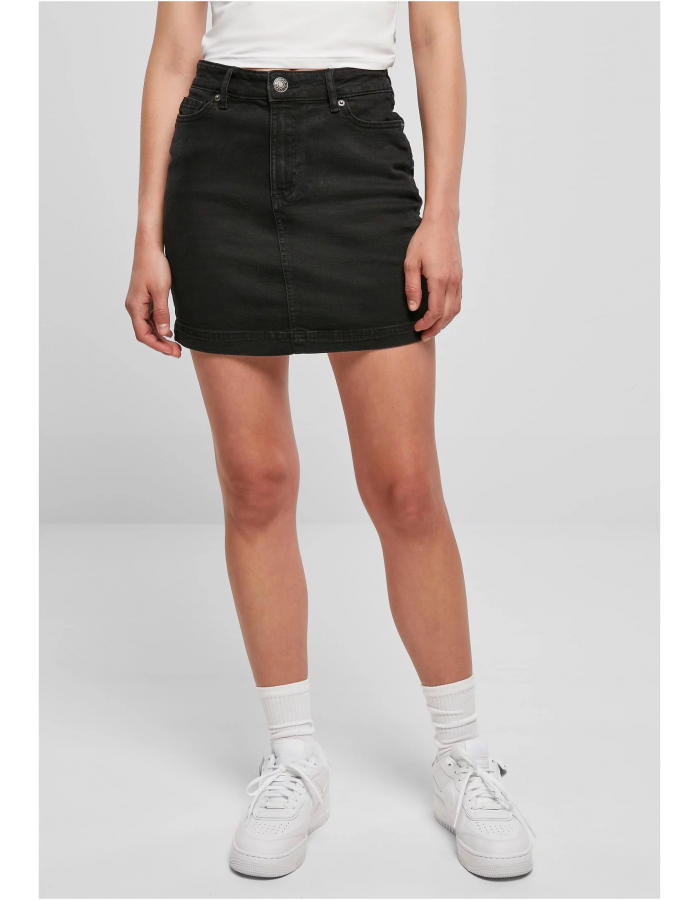 Přesně ten pravý kousek oblečení pro horké dny – tato mini džínová sukně musí mít každá žena. Vyznačuje se slavným tvarem pěti kapes, včetně dvou bočních kapes, kapsy na mince a dvou velkých záplatových kapes na zadní straně. Džínový vzhled dotváří kovový zip, kovový knoflík v pase a metalické nýty. Džínová sukně má přirozeně sexy přiléhavý střih a je vyrobena z příjemné směsi materiálů z organické bavlny a bavlny s podílem elastanu.