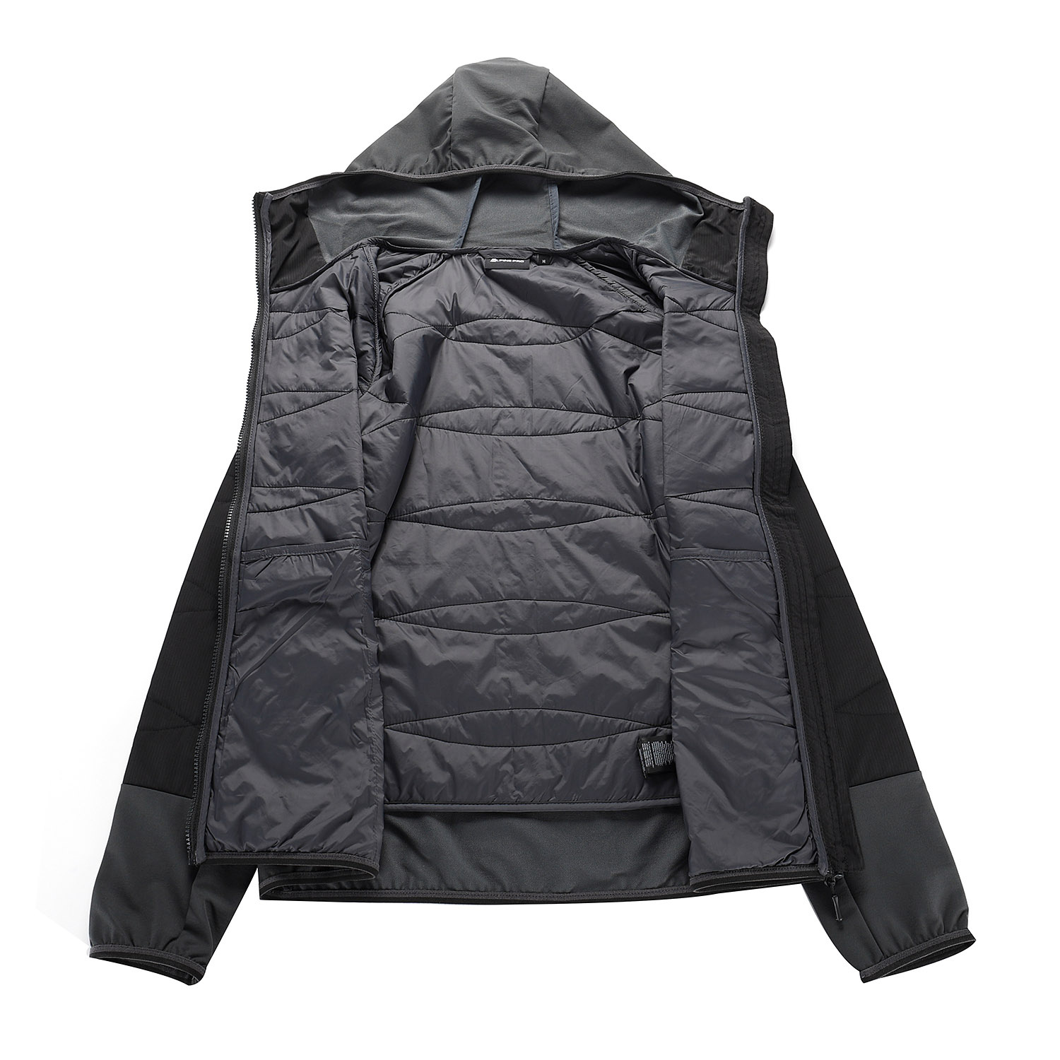 Je vyrobena z vodoodpudivého, prodyšného, větruodolného a pružného materiálu se strukturovaným povrchem a úpravou DWR, díky níž bunda spolehlivě odolává vlhkosti.