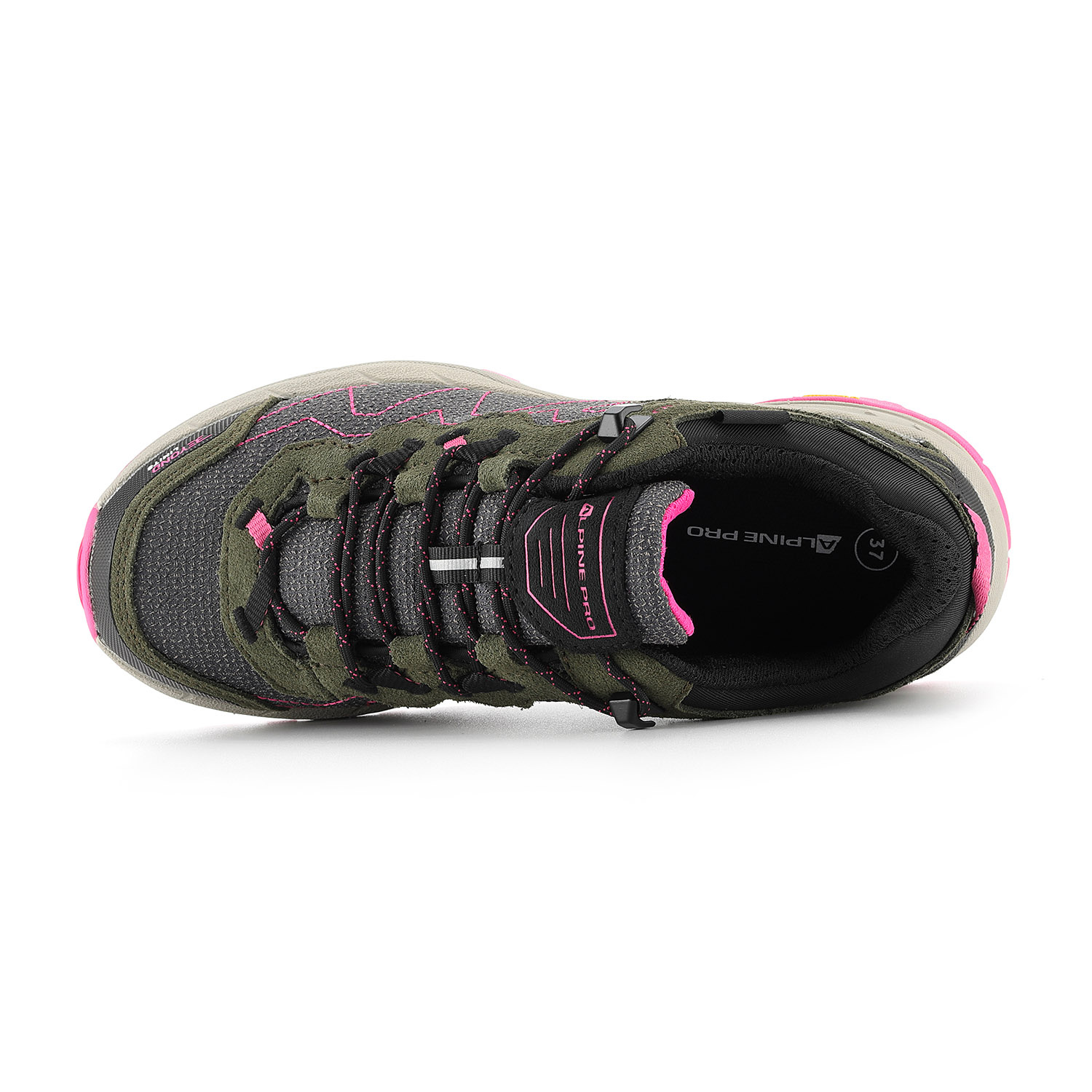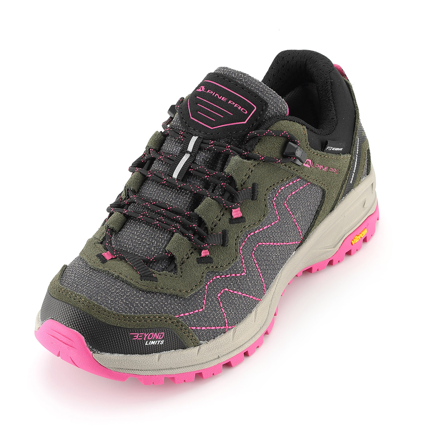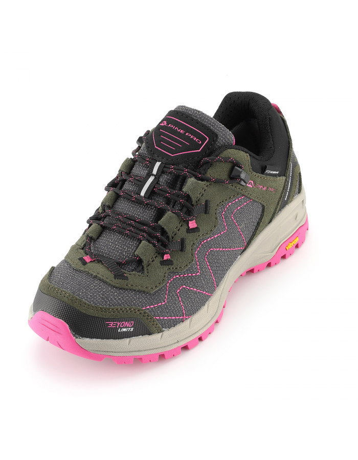 Obuv je doplněna logem Alpine Pro, které podtrhuje její kvalitní zpracování a český původ.