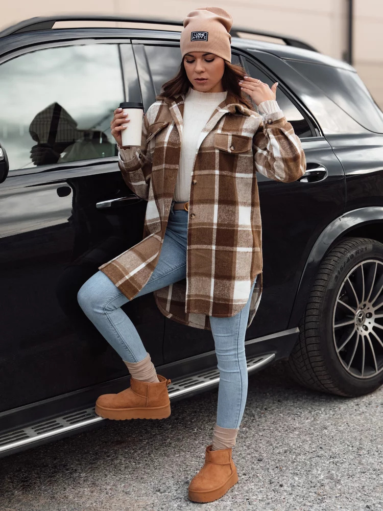 Košilová bunda volného střihu, ideální na každodenní nošení. Vzor v kostce jí dodává stylový charakter a měkký materiál zajišťuje pohodlí při nošení. Skvěle se hodí k džínům a kotníkovým botám, vytváří ležérní, ale módní stylizaci. To je skvělá volba na chladnější dny, kdy se pohodlí snoubí se stylem.