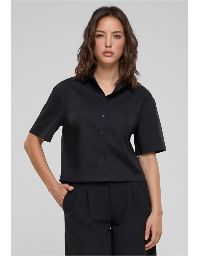 Široká halenka končí v pase a vyzařuje ženskou nonšalanci. Je vybavena límečkem a knoflíkovou légou. Dalšími prvky je sedlo vzadu, kde je halenka také lehce nařasená šipkami. Košile se skládá z elastického a lehkého materiálového mixu bavlny, polyesteru a elastanu.