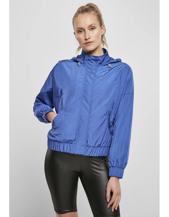 Tato sportovní a funkční dámská bunda je vyrobena z třpytivého mačkaného nylonu. Nabízí všechny funkce, které můžete od spolehlivé dámské bundy očekávat: elastické manžety na rukávech a spodním lemu, dvě kapsy na zip, spodní zapínání na knoflík se zipem a velkou kapuci se stahovací šňůrkou a průhlednými zarážkami. Obzvláště ležérní je oversize střih s širokými, zastřiženými rukávy a dělícími švy. Mimochodem ležérní dámská sportovní bunda obsahuje podšívku ze síťoviny.