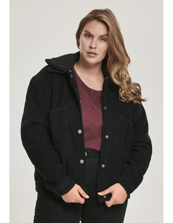 Dámská oversized manšestrová bunda Sherpa černá/černá 5XL