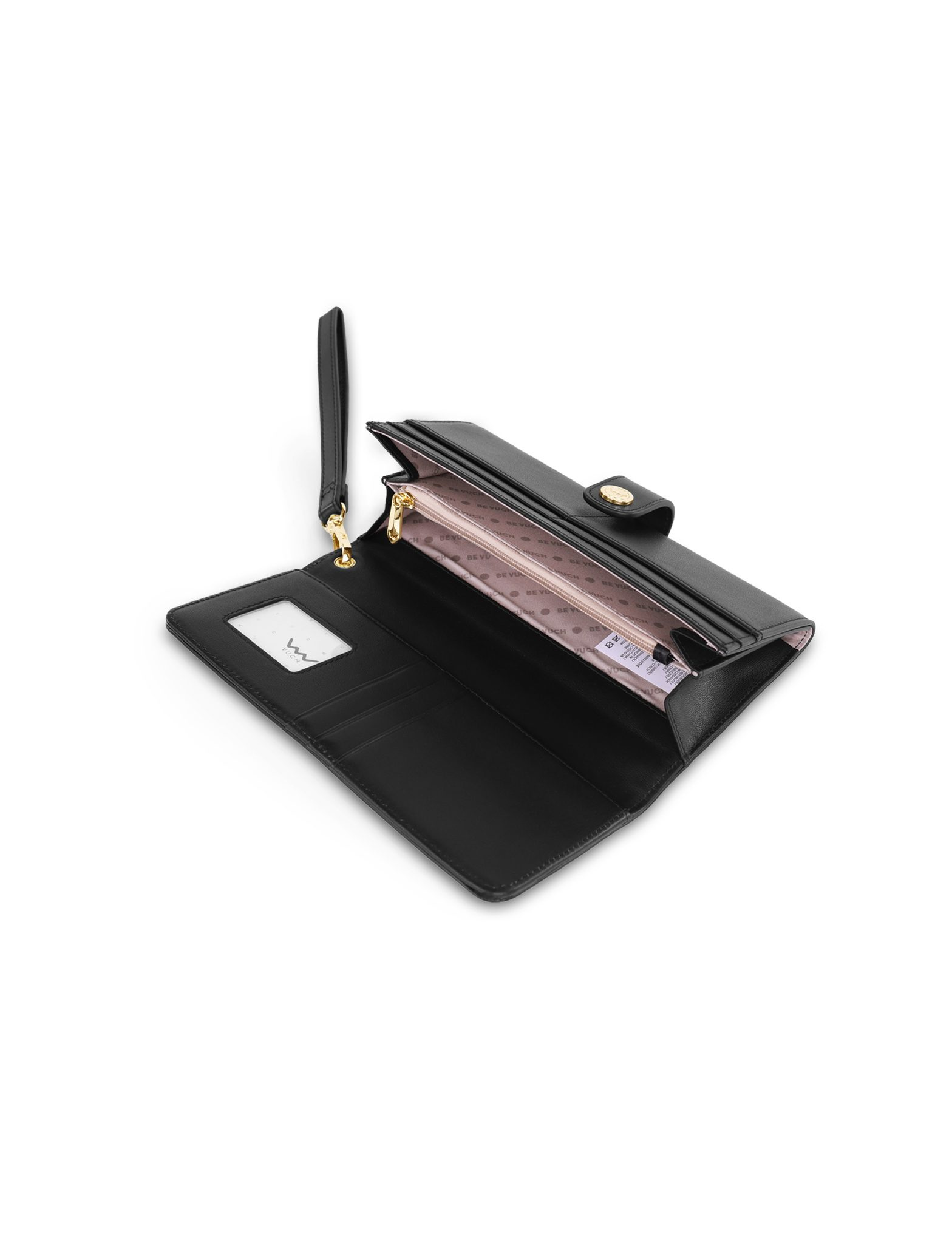 Peněženka, která chápe, že styl je v detailech. Jemná kožená textura, štíhlá silueta a decentní kování pro ten správný “statement look” i při placení latté. Poutko zajišťuje pohodlné nošení, ať už míříš za kámoškou nebo do divadla.