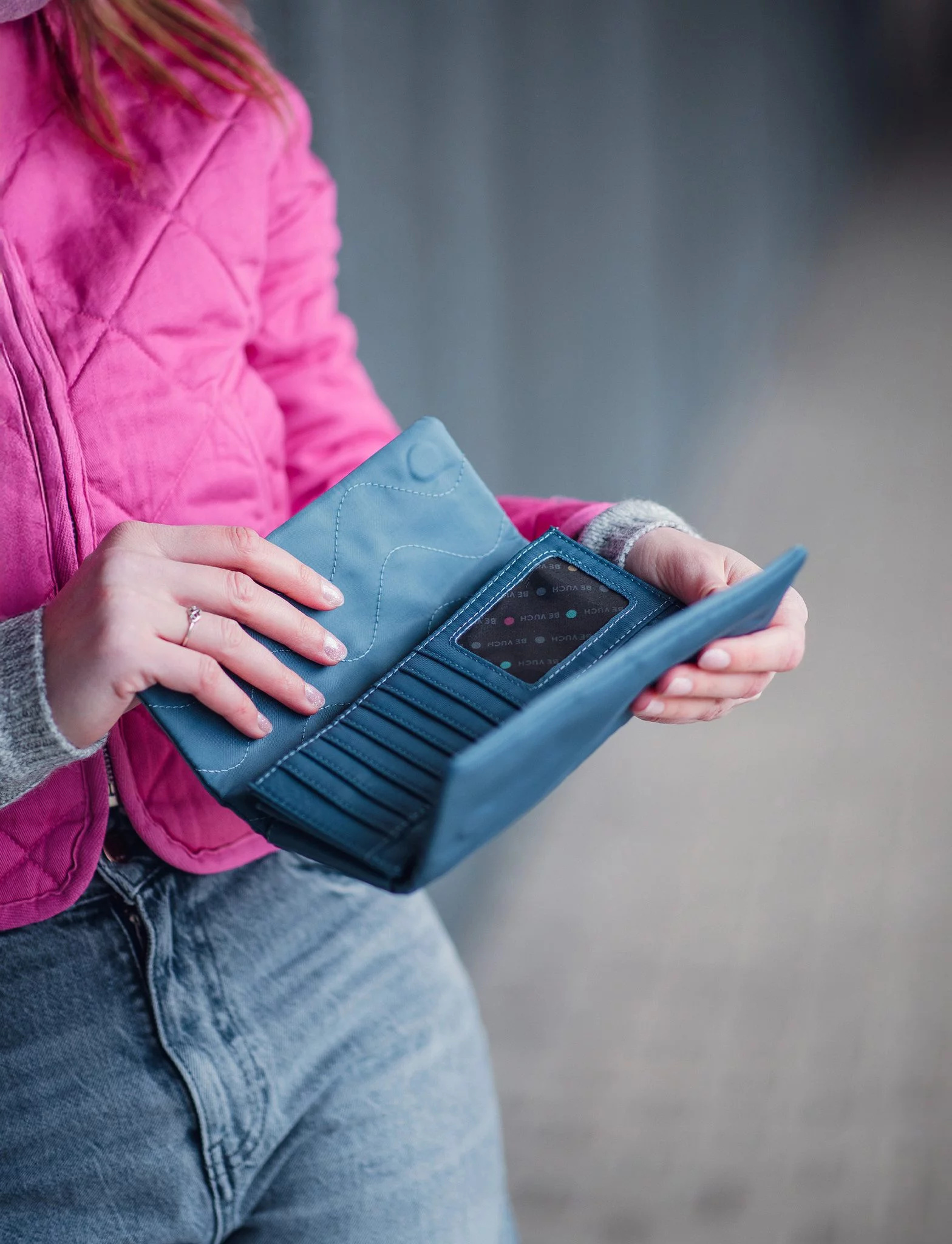 Lehká jako peříčko a přesto prostorná – seznam se s novou členkou rodiny z tohohle měkkého materiálu! Velká peněženka s klopou, která stíhá Tvoje tempo, ať už jsi na cestách nebo si užíváš klidnou chvilku. Je praktická, stylová a připravená na vše, co jí svěříš. Tahle krasavice Tě prostě podrží, ať jsi kdekoli!