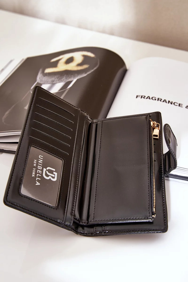 Elegantní peněženka vyrobená z eko kůže, zapínaná na magnetický klip. Uvnitř se nachází praktický prostor na mince, bankovky, fotografie a karty. Ideální volba na každý den a skvělý nápad na dárek.