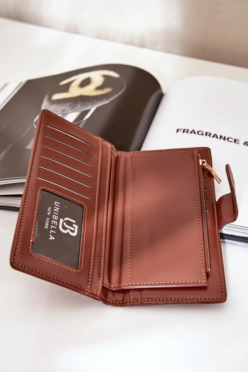 Elegantní peněženka vyrobená z eko kůže, zapínaná na magnetický klip. Uvnitř se nachází praktický prostor na mince, bankovky, fotografie a karty. Ideální volba na každý den a skvělý nápad na dárek.