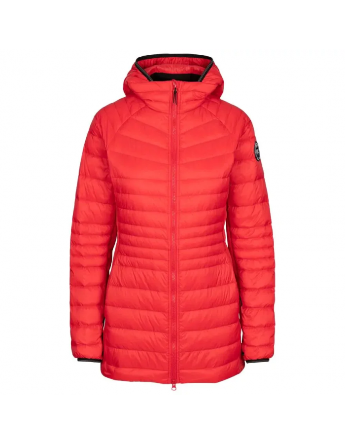 Design s pevně připojenou kapucí zvyšuje všestrannost a pohodlí této stylové a funkční péřové bundy.