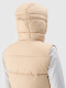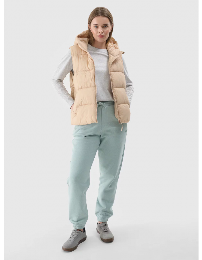 Dámská péřová vesta s kapucí je vybavena integrovanou kapucí bez možnosti regulace. Krk je chráněn nízkým stojáčkem. Na bocích jsou 2 otevřené kapsy. Dámská péřová vesta se zapíná na jednosměrný hlavní zip a je vybavená vnitřní větruodolnou légou, která omezuje pronikání chladu dovnitř bundy. Obvod spodní části lze upravit pomocí tunelové šňůrky se stopery.