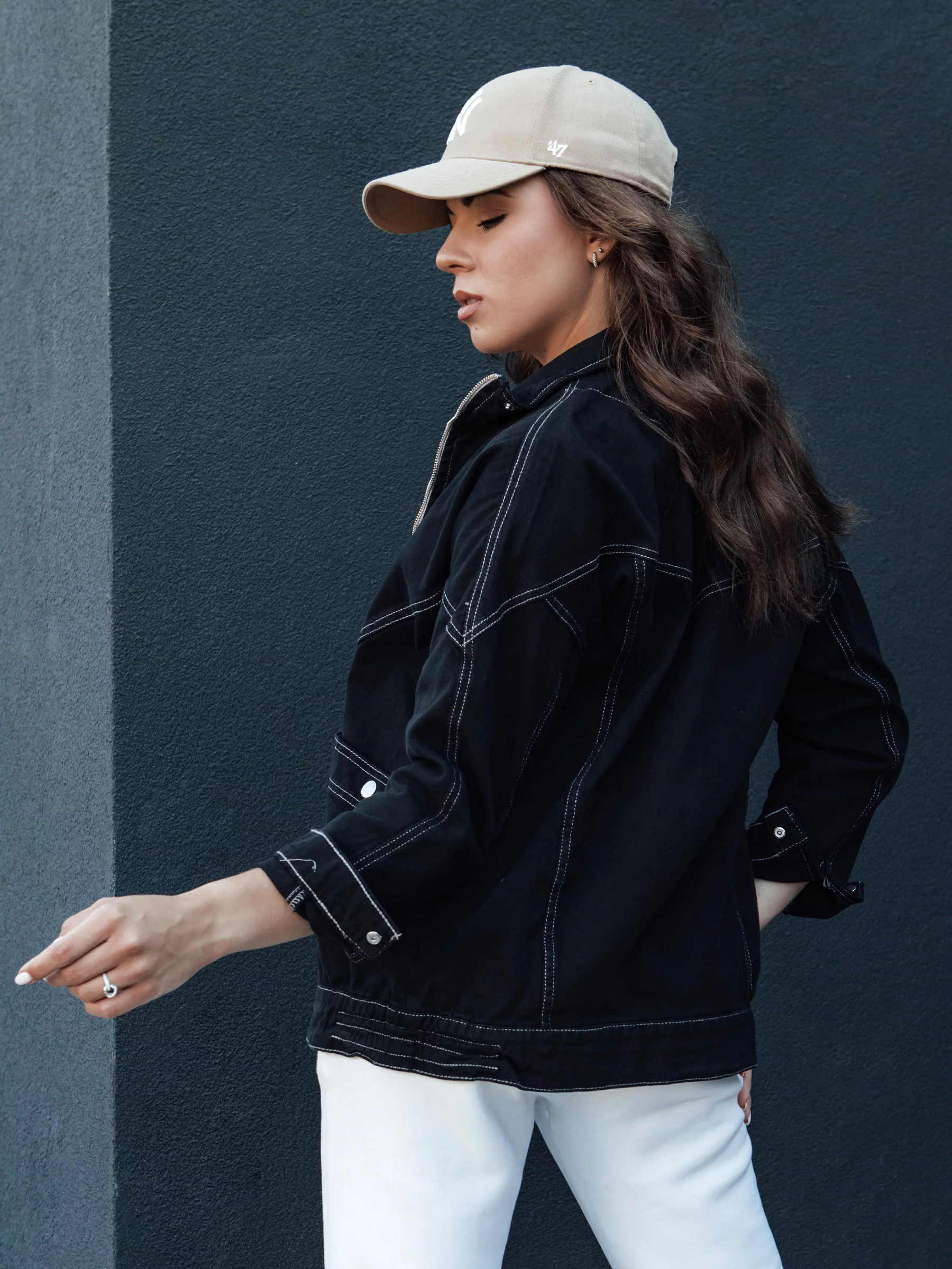 Dámská oversized džínová bunda Sherpa, černá sepraná