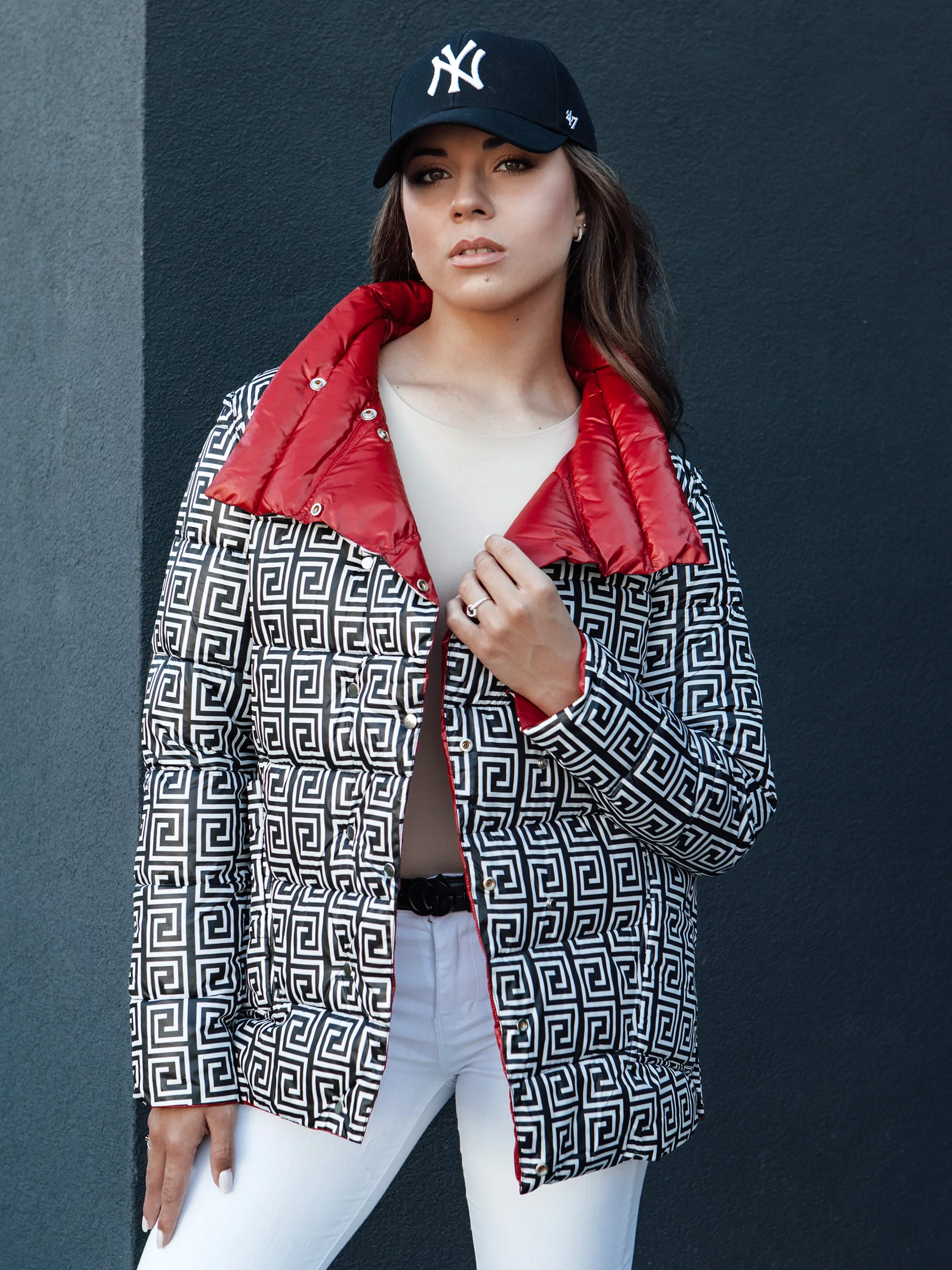 Tato oboustranná, prošívaná bunda je perfektní volbou pro přechodné období. Model zapínaný na druky, vybavený velkými kapsami a módním potiskem, je skvělým doplňkem každodenních stylizací. Díky ní každý outfit získá jedinečný charakter a fenomenální vzhled.