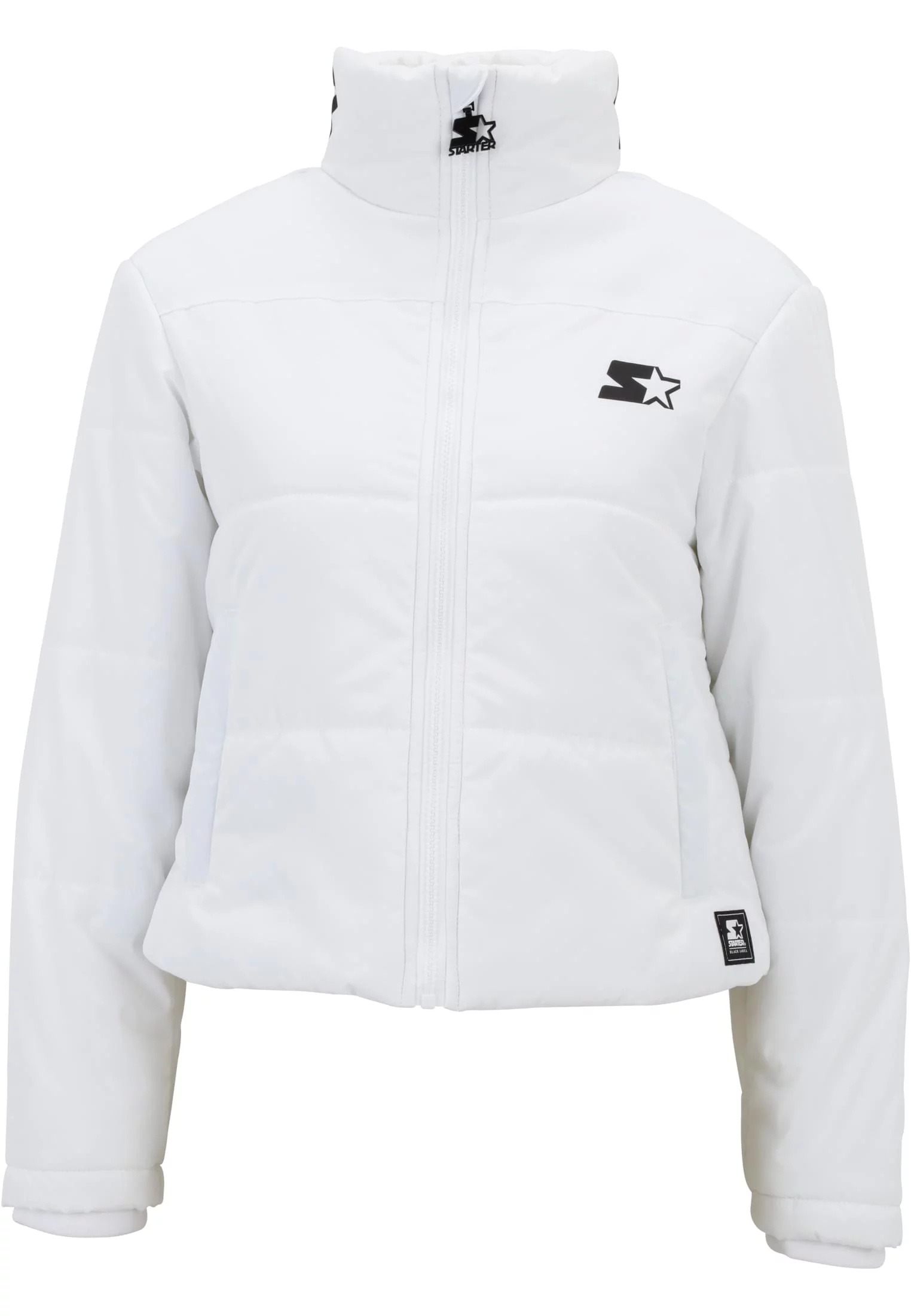Na zadní straně stojacího límce je slavný nápis Starter. Menší logo se nachází na hrudi a jako výšivka na rukávu. Prošívání dodává polstrované dámské bundě strukturu. Dvě praktické kapsy na zip a běžný střih doplňují bundu.