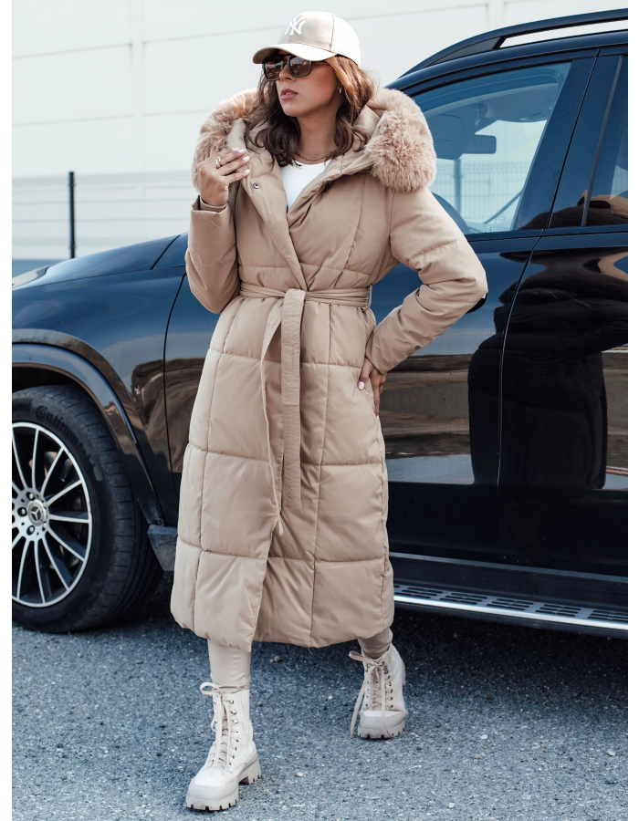 Dámská prošívaná dlouhá bunda GLAMWARM béžová Dstreet TY4559 Velikost: XL