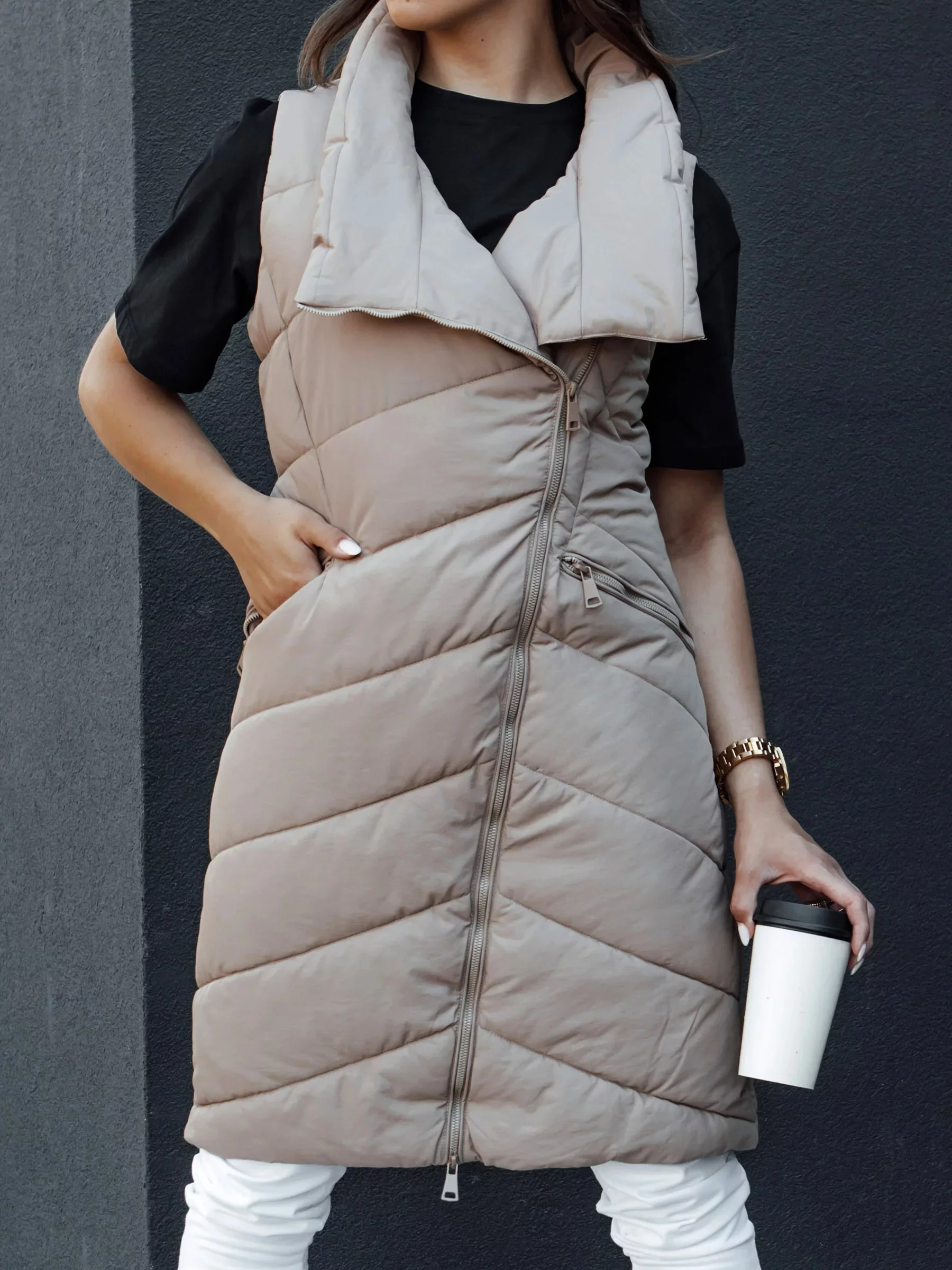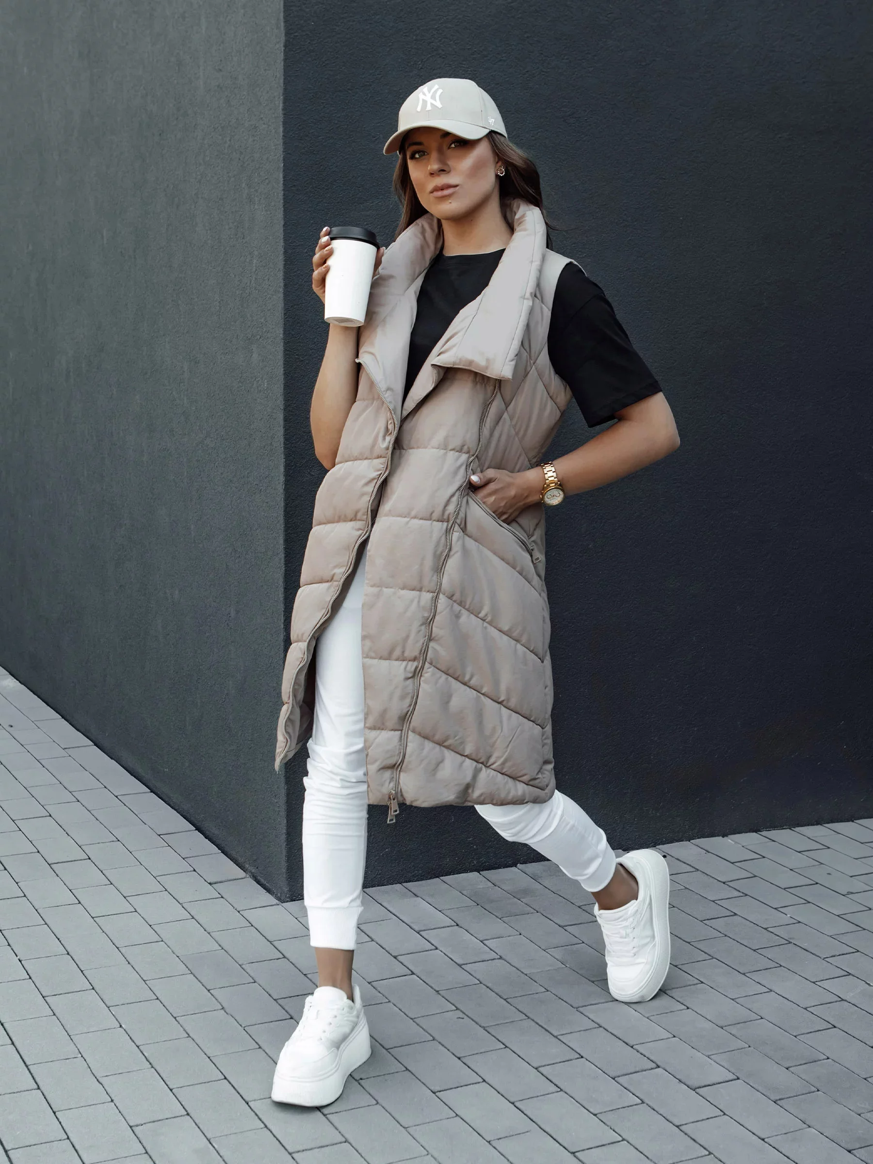 Tato stylová péřová vesta je ideálním řešením pro chladnější dny. Díky modernímu střihu a vysoce kvalitním materiálům zajišťuje nejen tepelný komfort, ale také skvěle vypadá v každém outfitu. Velké kapsy a praktický zip zdůrazňují její funkčnost. Ideální jak pro městské, tak i neformální outfity. Vesta se dokonale hodí k džínům, legínám nebo sportovním kalhotám, čímž vytváří módní a zároveň pohodlný outfit. Vyberte si kvalitu a styl, které vás odliší!