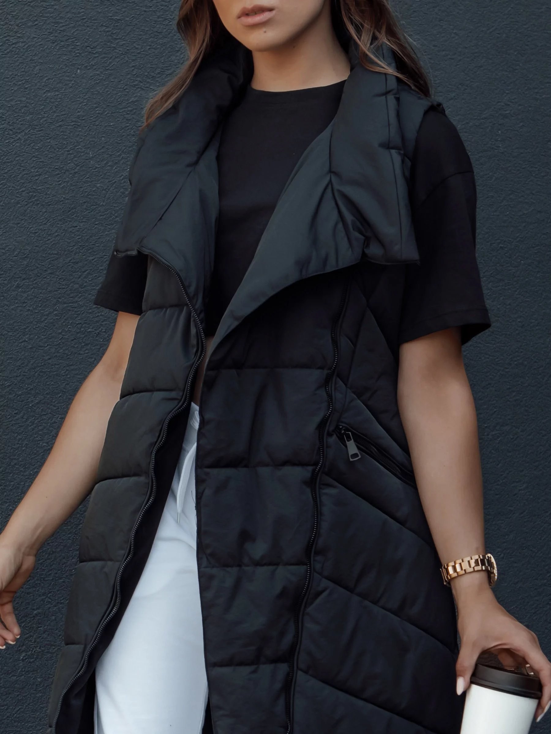 Tato stylová péřová vesta je ideálním řešením pro chladnější dny. Díky modernímu střihu a vysoce kvalitním materiálům zajišťuje nejen tepelný komfort, ale také skvěle vypadá v každém outfitu. Velké kapsy a praktický zip zdůrazňují její funkčnost. Ideální jak pro městské, tak i neformální outfity. Vesta se dokonale hodí k džínům, legínám nebo sportovním kalhotám, čímž vytváří módní a zároveň pohodlný outfit. Vyberte si kvalitu a styl, které vás odliší!