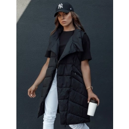 Dámská prošívaná dlouhá vesta bez kapuce SERKIS černá Dstreet TY4524 S