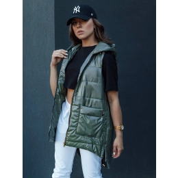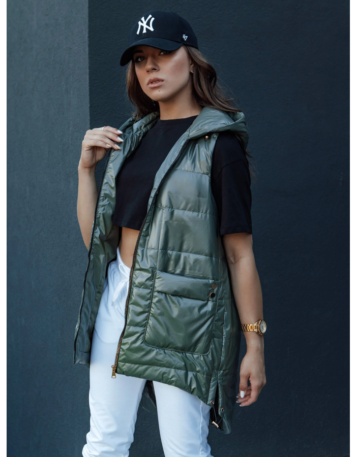 Dámská prošívaná dlouhá vesta s kapucí JESS zelená Dstreet TY4442 S