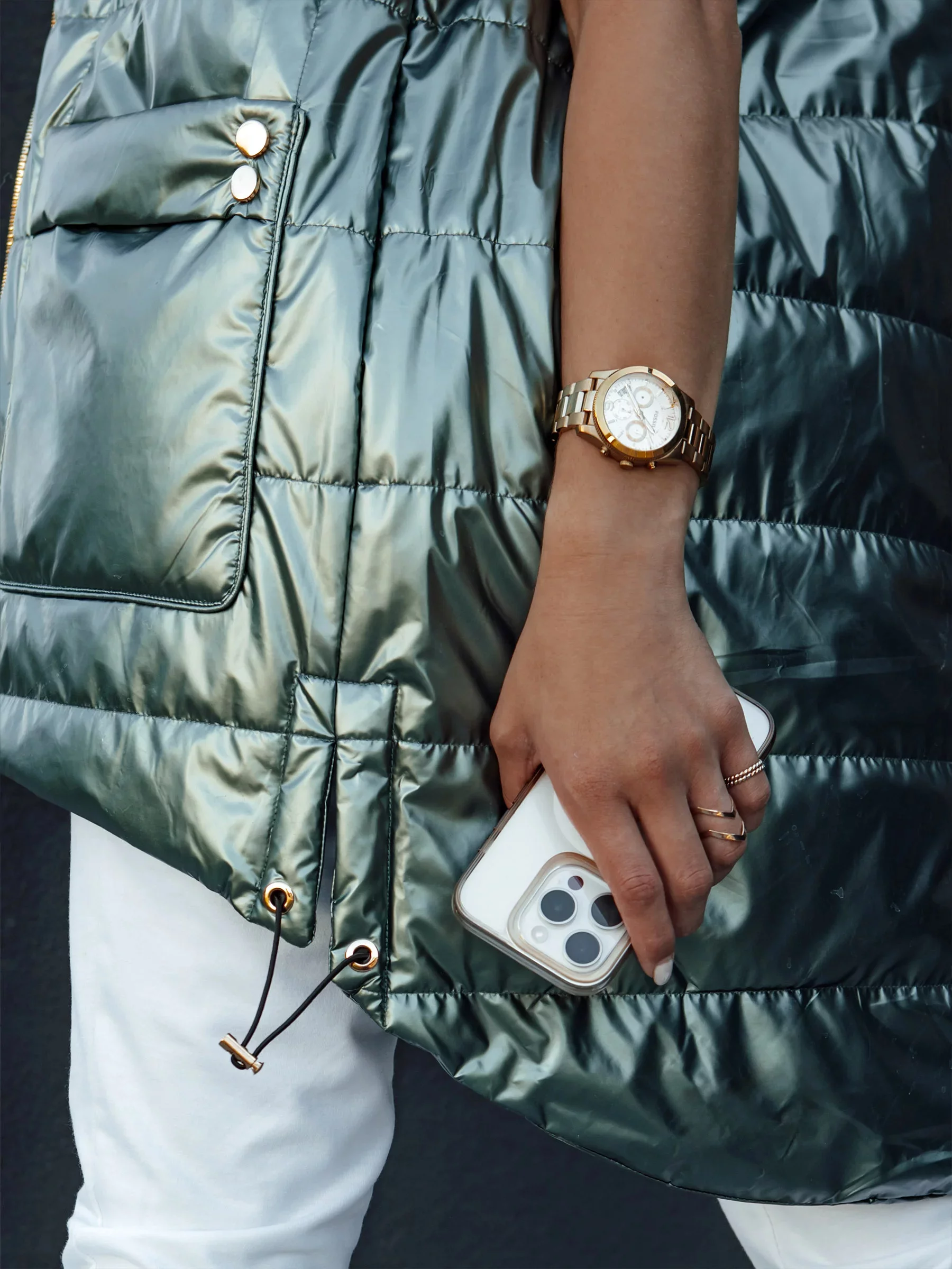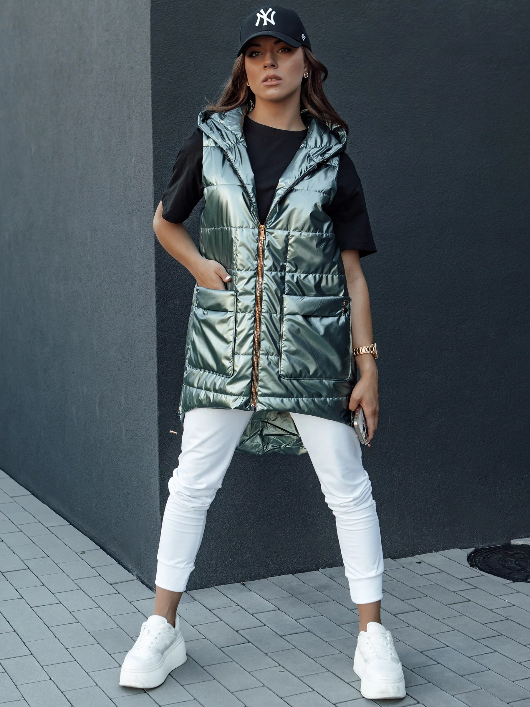 Dámská prošívaná dlouhá vesta s kapucí JESS zelená Dstreet TY4454 S