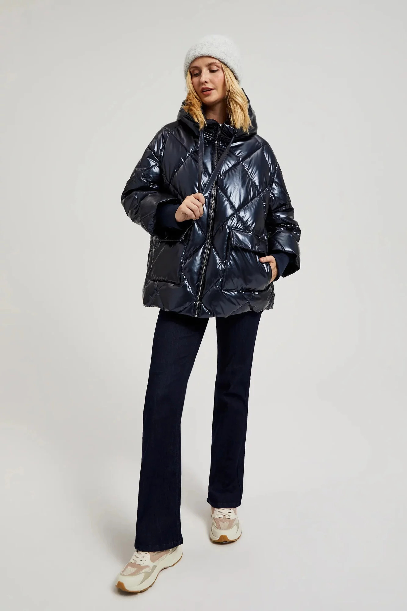 100%POLYESTER Dámská bunda v tmavě modré barvě je ideální volbou na zimu. Zateplená, prošívaná, s podšívkou a prošitím zajišťuje teplo a pohodlí v chladných dnech. Navíc našité kapsy zajišťují, že je praktická a pohodlná. Oversizeový střih zajišťuje, že se dokonale přizpůsobí postavě, a dlouhý rukáv a kapuce chrání před větrem. Zapínaná na zámek, sahající do boků - to je must-have na zimu. Bunda se skvěle hodí pro každodenní stylizaci. Lze ji nosit jak na procházku, do práce, tak i na setkání s přáteli. Díky hladkému, bezvzorovému designu se ideálně hodí k různým stylům. Ideální na zimu, když chceme být zároveň stylové i v teple.