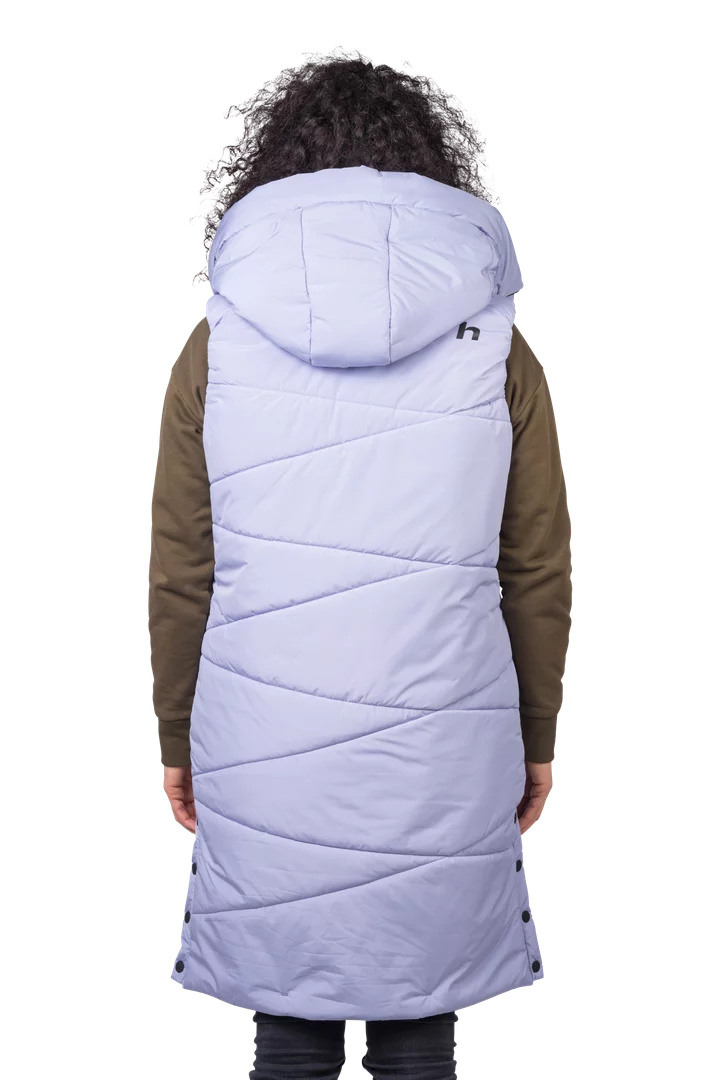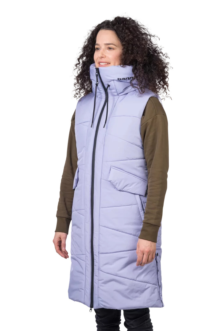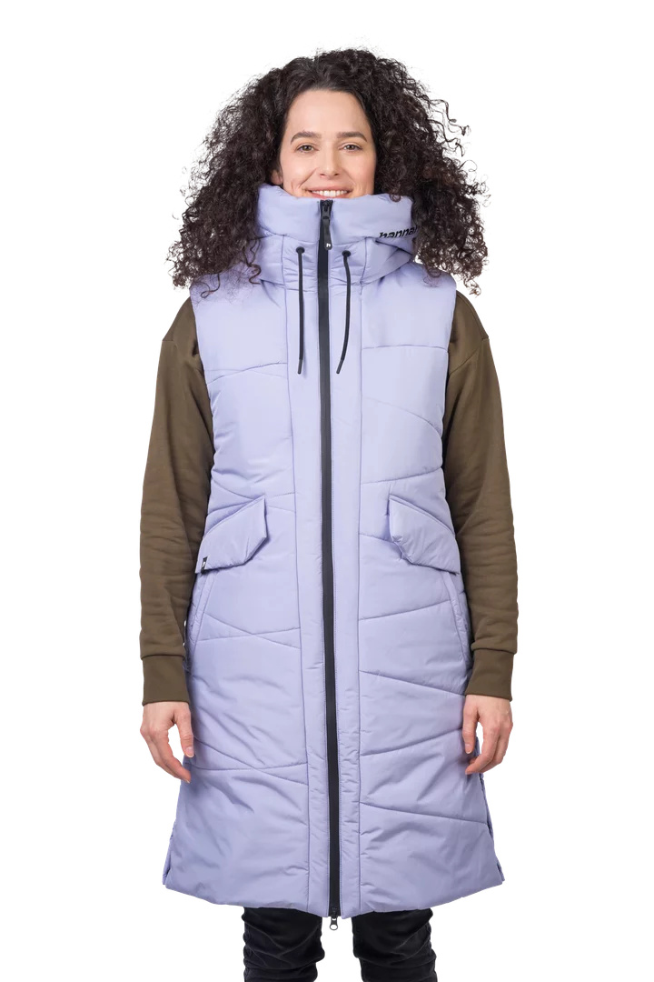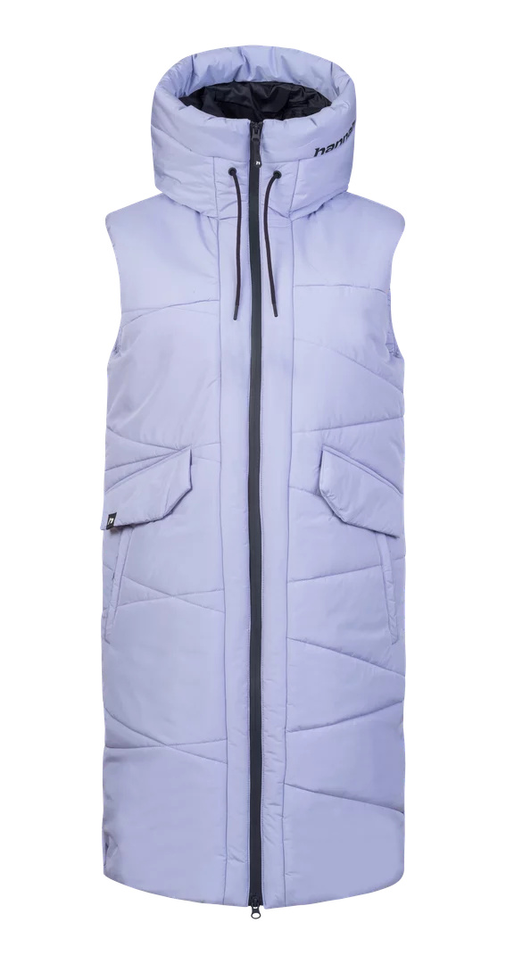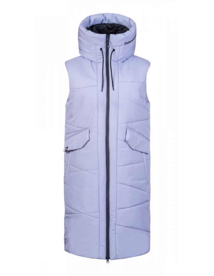 Dámská prošívaná vesta Hannah Ela v moderním prodlouženém střihu je lehká a příjemná na tělo a skvěle vás zahřeje během procházek po městě. U vesty je použit membránový materiál Resstex s vodním sloupcem 5 000 mm s DWR úpravou, který je doplněn o měkkou izolační výplň Duratherm High Loft. Vesta je vybavena přinechanou kapucí se stahováním, voděodolným dvoucestným zipem a dvěma výraznými kapsami na zip. Praktickou vychytávkou jsou boční rozparky na zip. Dekorativní prošití ještě více podtrhne trendy střih vesty.