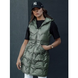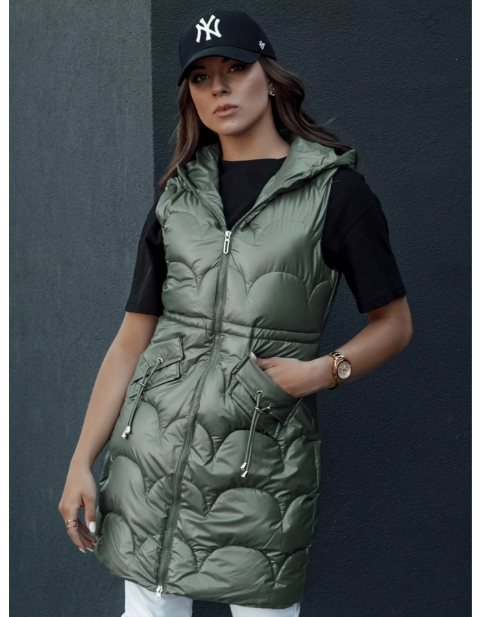 Dámská prošívaná vesta s kapucí dlouhá CHARMVEST zelená Dstreet TY4453 S