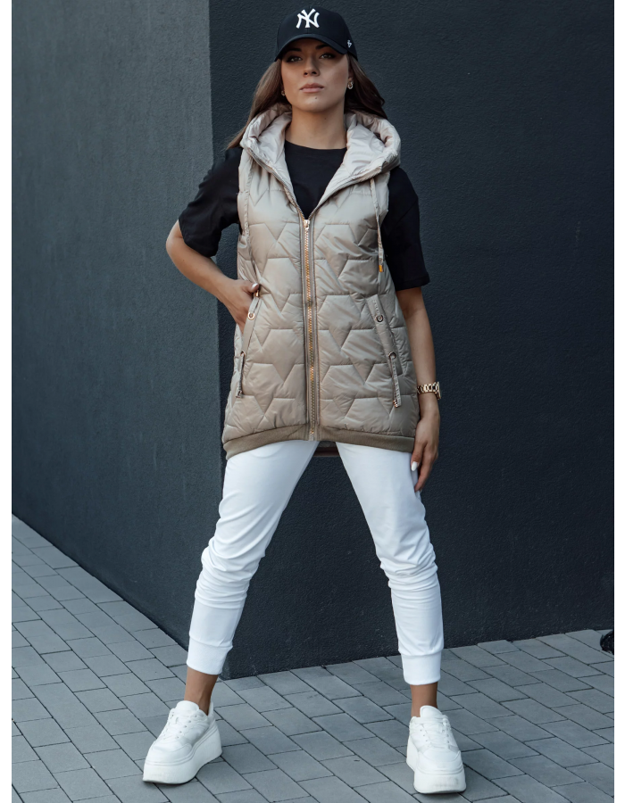 Dámská prošívaná vesta s kapucí GLITZY velbloudí Dstreet TY4444 S