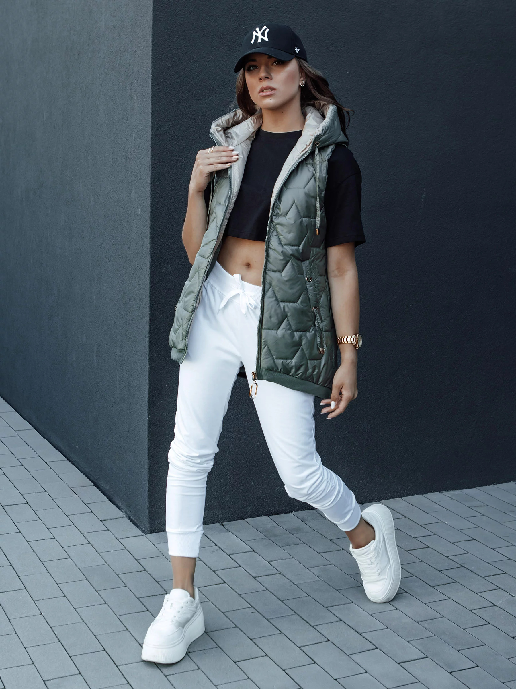 Prošívaná vesta s kapucí je nezbytností v každém šatníku. Dokonale se hodí k běžným stylizacím a dodává jim sportovní šmrnc. Lehká, a zároveň teplá, ideální na podzimní a zimní dny. Díky univerzálnímu střihu se hodí k džínům, teplákům i sukním. Funkční kapuce a pohodlné kapsy jsou dalšími přednostmi tohoto modelu. Objednejte si ještě dnes a přesvědčte se, jak snadno lze spojit styl s pohodlím.