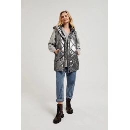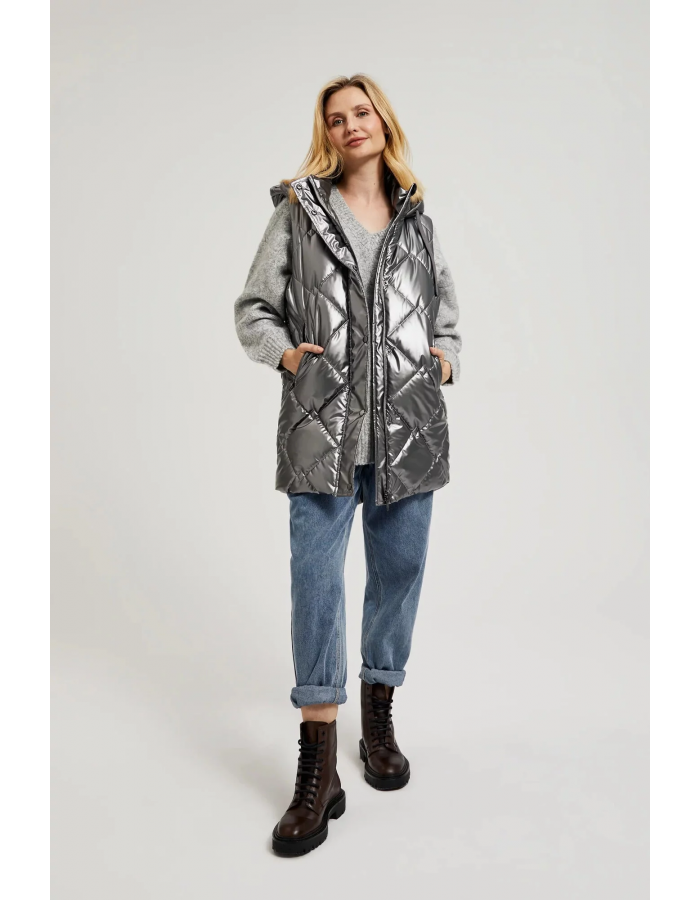 Dámská prošívaná vesta s kapucí MOODO - stříbrná Velikost: XXL