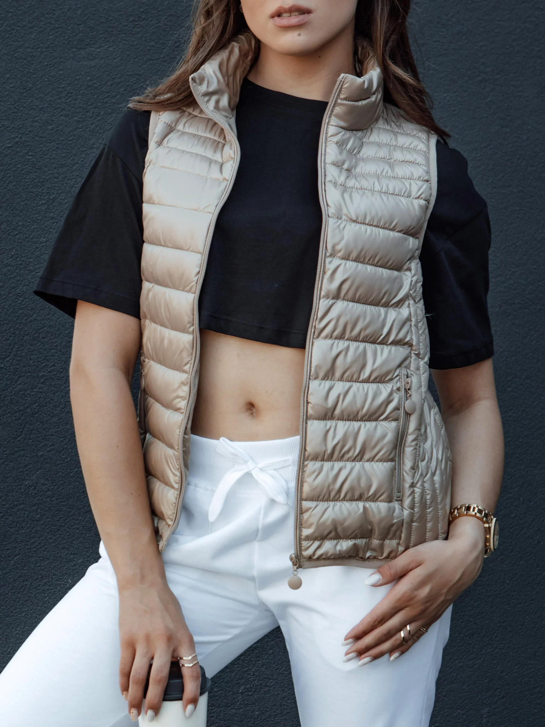 Stylová prošívaná vesta je nutností ve vašem šatníku! Vyrobeno z lehkého materiálu, který zajišťuje optimální tepelnou izolaci. Funkční kapsy a moderní střih zajišťují, že je nejen praktická, ale také mimořádně módní. Dokonalá na chladnější dny, ideálně doplní jak sportovní, tak i ležérní outfity. Vyberte si tuto vestu, abyste zdůraznili svůj individuální styl a užívali si pohodlí po celý den.