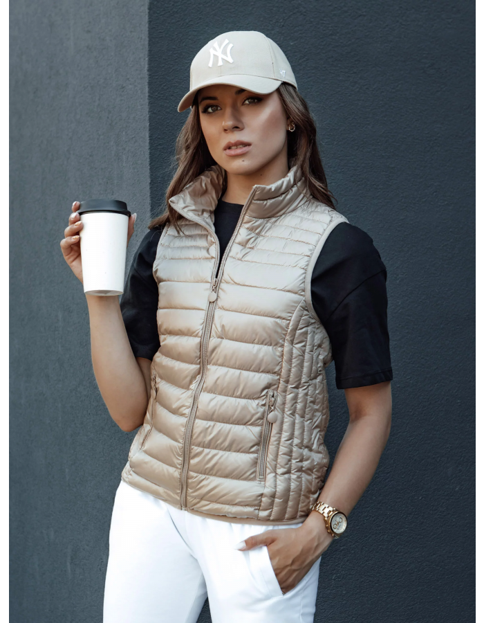 Dámská prošívaná vesta se stojáčkem STYLISHZ velbloudí Dstreet TY4439 S