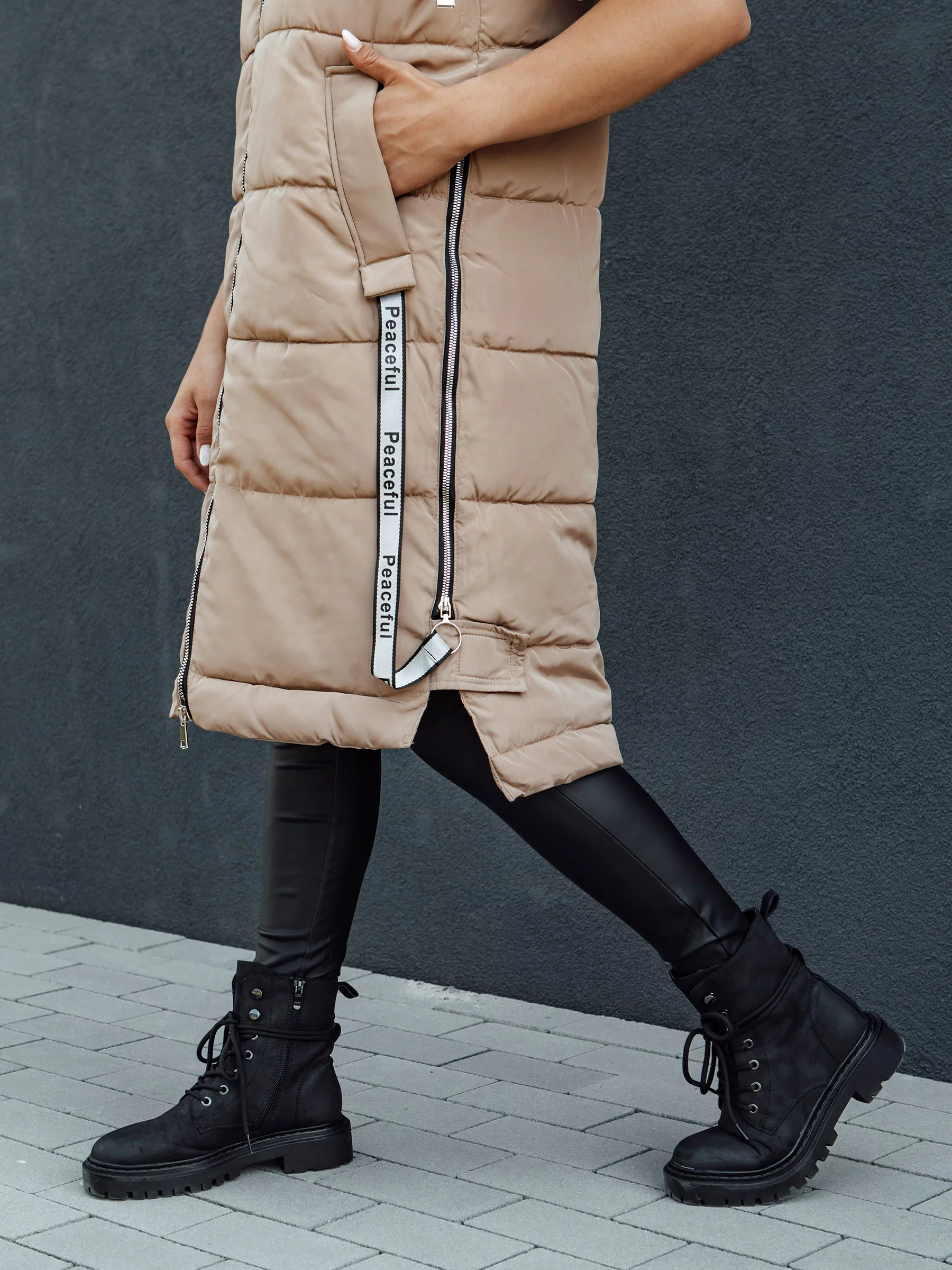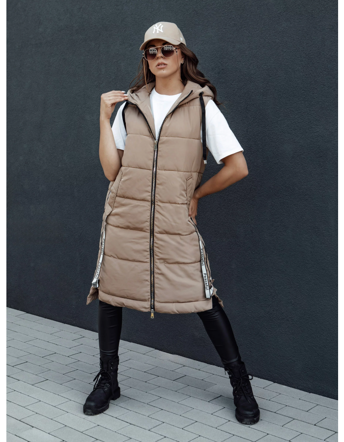 Dlouhá prošívaná vesta dokonale doplní tvé stylizace. Zapínaná na zámek, vesta má neodnímatelnou kapuci a dvě prostorné kapsy vpředu. Boční zip umožňuje její rozepnutí, což přidává na pohodlí. Dostupná v několika barvách, je rozhodně MUST HAVE nadcházející sezóny. Díky zateplení se ideálně hodí na podzim a zimu.