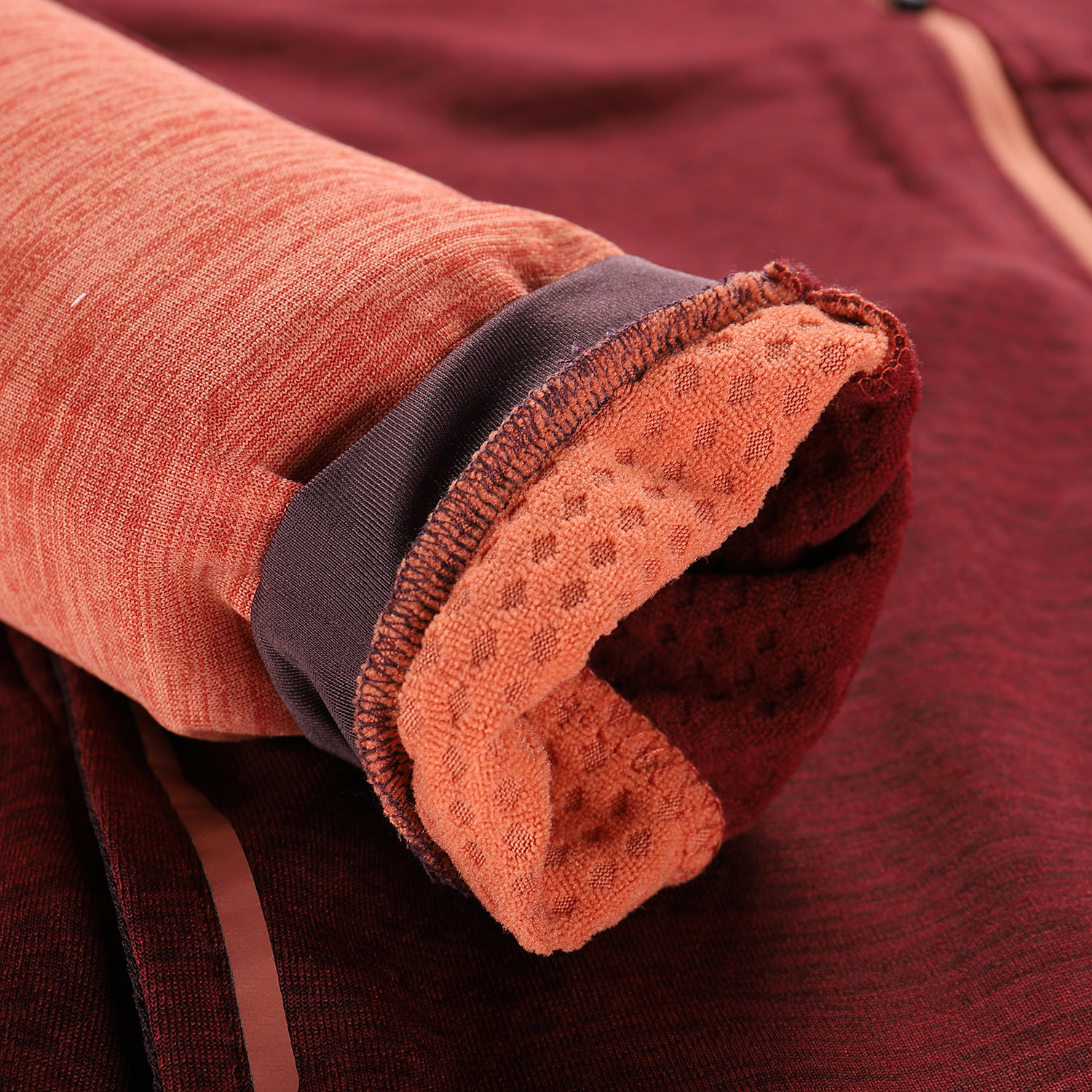 Přiléhavý, anatomicky tvarovaný střih spolu s límcem, rukávy a spodní částí lemovanými gumou zajišťuje pohodlí, volnost pohybu i ochranu proti chladu. Mikina je vybavena třemi kapsami – dvěma předními a jednou náprsní na zip – s delšími taháčky pro snadnou manipulaci, reflexním potiskem na předním dílu a decentními detaily, které podtrhují její sportovní charakter.