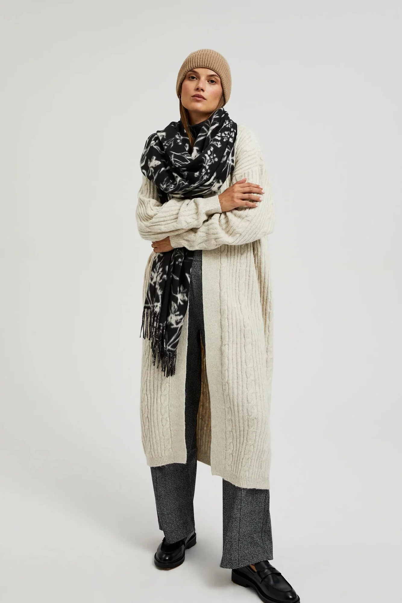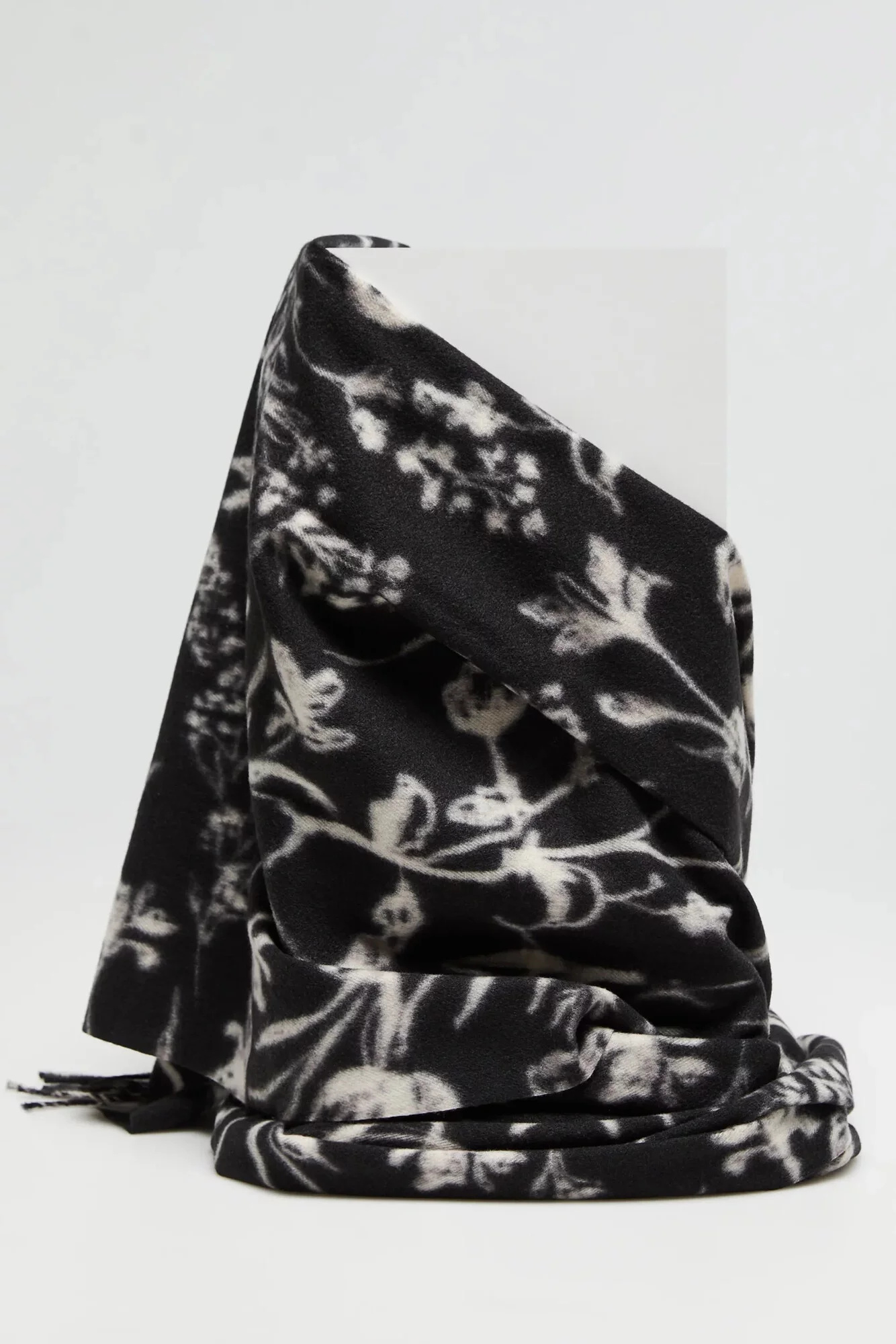 100% POLYESTER Dámský šátek v černé barvě s jemnými květinovými vzory je ideálním doplňkem do vaší kolekce doplňků. Vyrobený z lehkého materiálu, který se krásně usazuje na krku, dodává eleganci a styl každému outfitu. Třásně mu dodávají lehkost a jemnost, díky čemuž budete vypadat módně a elegantně.