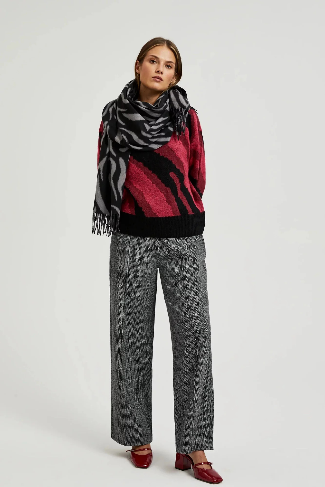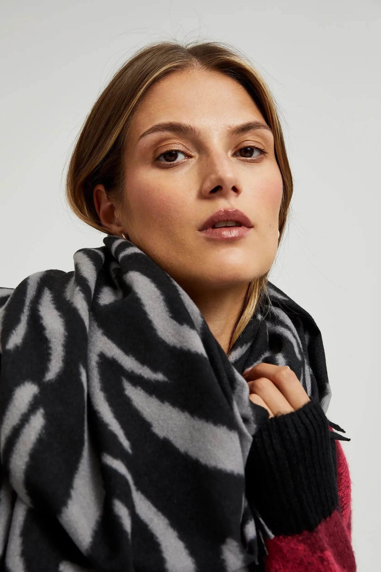 Vyrobený z měkkého materiálu v jiném vzoru, navíc ozdobený třásněmi. Produkt, který zajišťuje pohodlí při nošení a vynikající přizpůsobení různým stylizacím. Tento šedý šátek bude ideální na chladné dny, dokonale doplní elegantní stylizaci na obchodní schůzku nebo romantické rande. Hodí se jak k plášti, tak k kožené bundě, dodává každému outfitu eleganci a jedinečný charakter. Pořiď si tento neobyčejný doplněk do šatníku už teď!