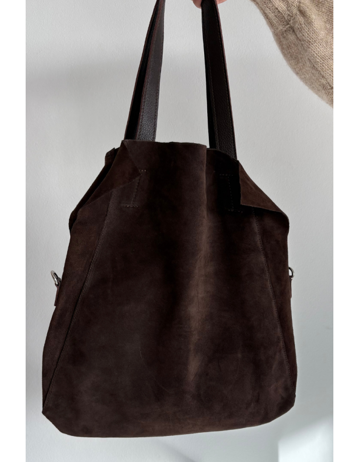 Dámská kabelka Miraya z přírodního semiše v čokoládové barvě nabízí prostorný a praktický shopper design. Měkký materiál a kvalitní zpracování zajišťují komfort při nošení, zatímco tmavá elegantní barva dodává kabelce nadčasový vzhled vhodný pro každodenní i volnočasové použití.