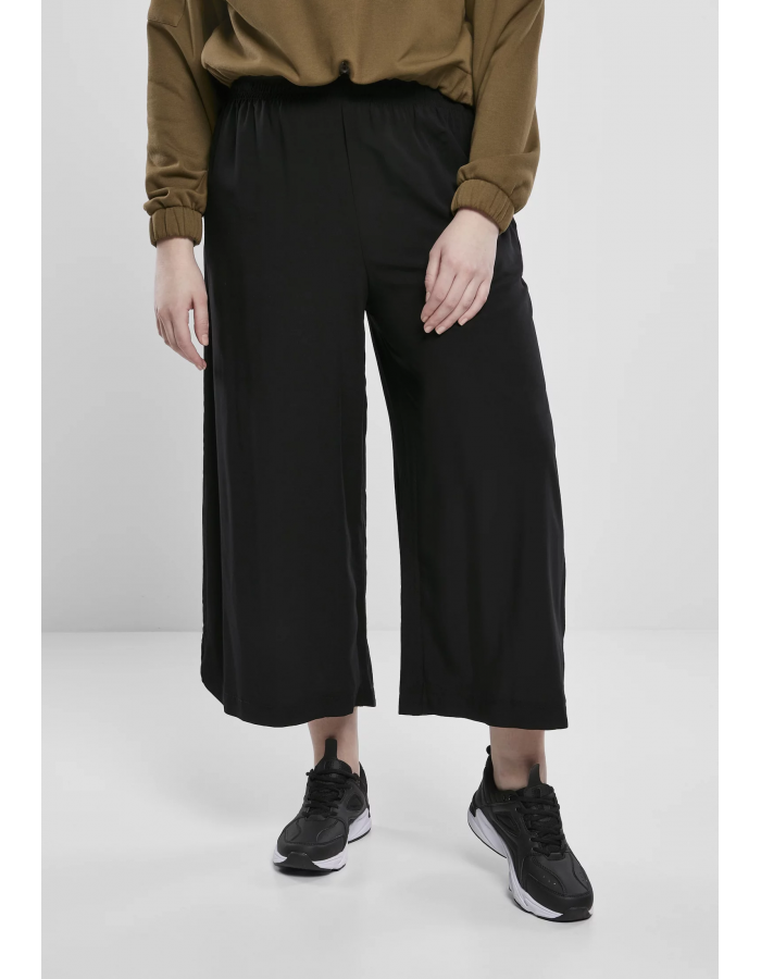 Culottes patří do každého módního šatníku. Tento padá široce a rovně po noze a končí vysoko nad kotníky. Viskózový materiál vám nabízí maximální volnost pohybu, zatímco elastický pas poskytuje skvělé pohodlí při nošení. Po stranách navíc najdete praktické kapsy. Nezbytnost pro dokonalé léto ve městě!