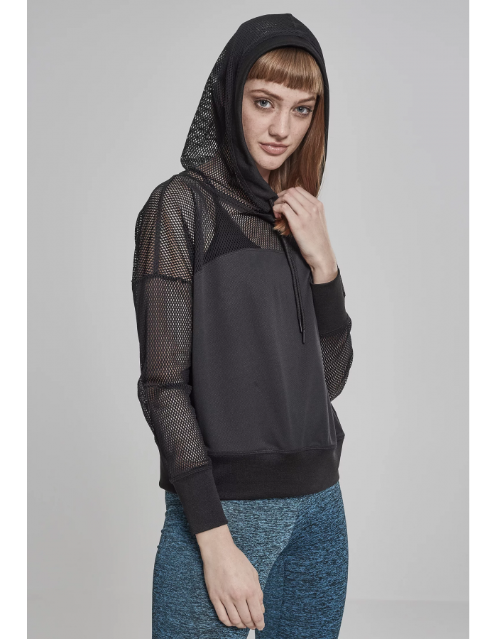 Super pohodlná mikina s kapucí: volná a vzdušná, dámská síťovaná mikina s kapucí má skvělou směs látek, díky které je opravdu jedinečná. Žerzejová síťovina na rukávech a ramenou, jemně texturovaná látka na zbytku horní části těla a velká síťovaná kapuce jsou jen malou částí přitažlivosti této mikiny.