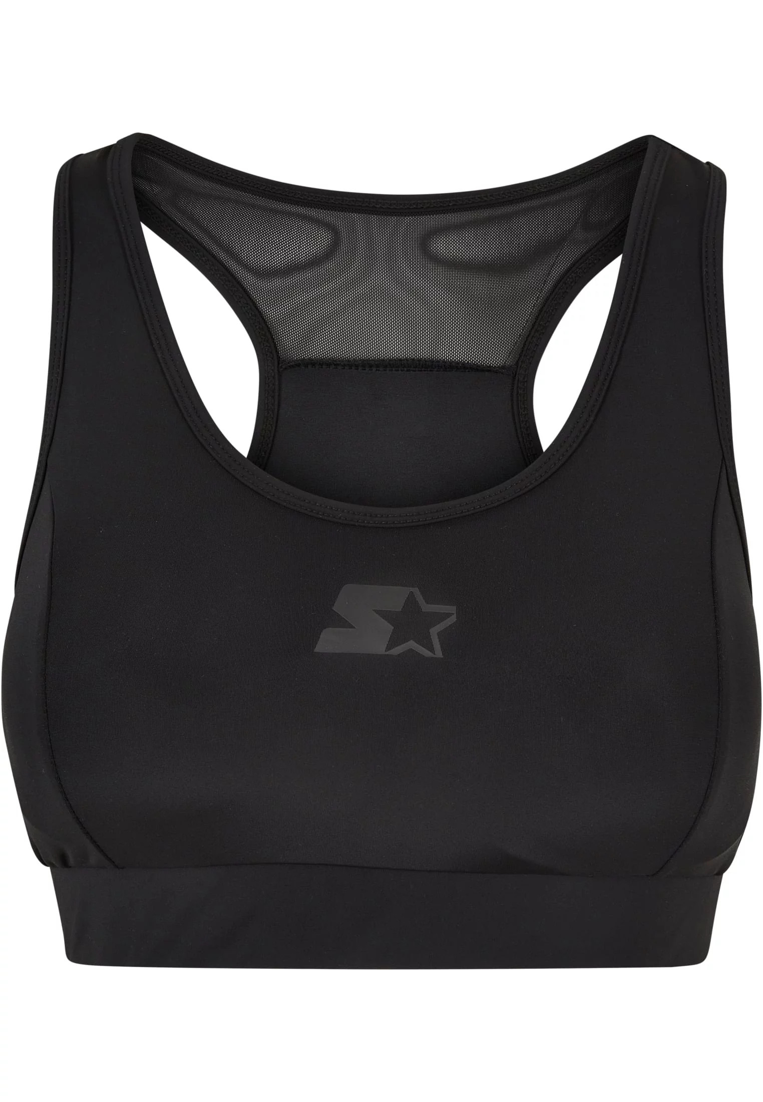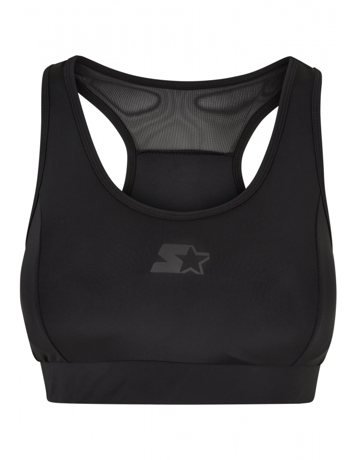 Jednoduchá, funkční a snadno se nosí, tato sportovní podprsenka nabízí racerback tvar s otevřenými rameny. Podprsenka je lehce vycpaná a má na zádech průhledný síťovaný prvek. Zbytek je vyroben z pohodlné strečové žerzejové tkaniny. Střih sportovní podprsenky je pěkný a těsně přiléhá k postavě. Dva potisky loga Starter zdobí hruď a záda.